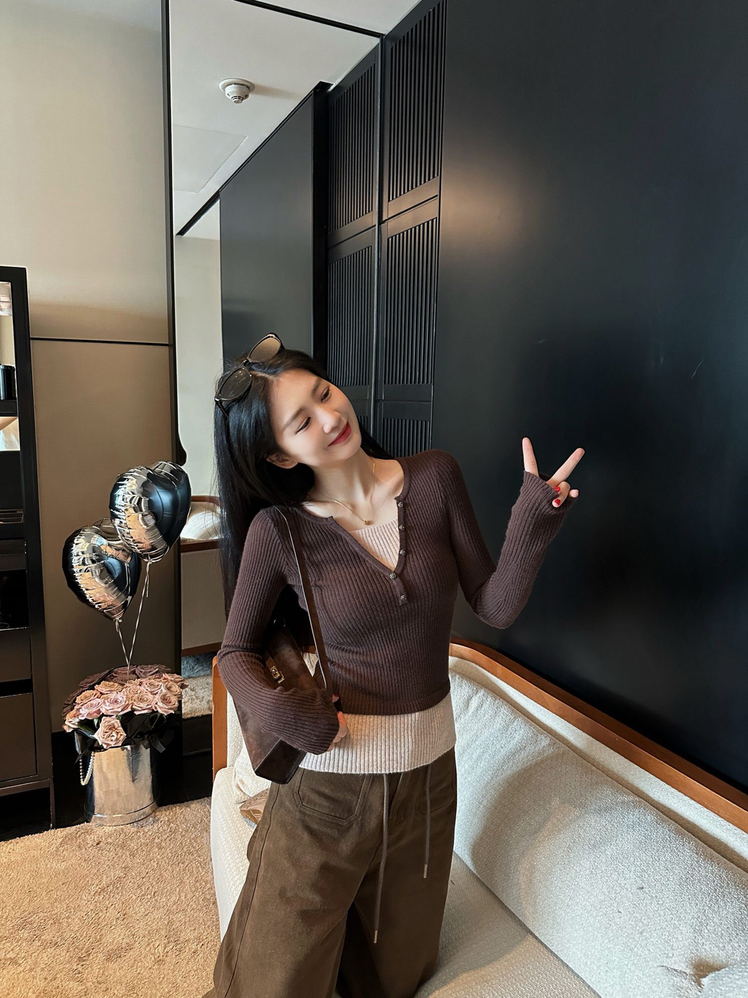 Rabbit Fleece Faux Two V- Neck Knitted Base Top Pired Modern – Winter Outfit