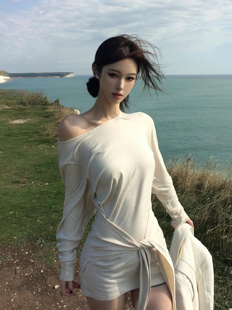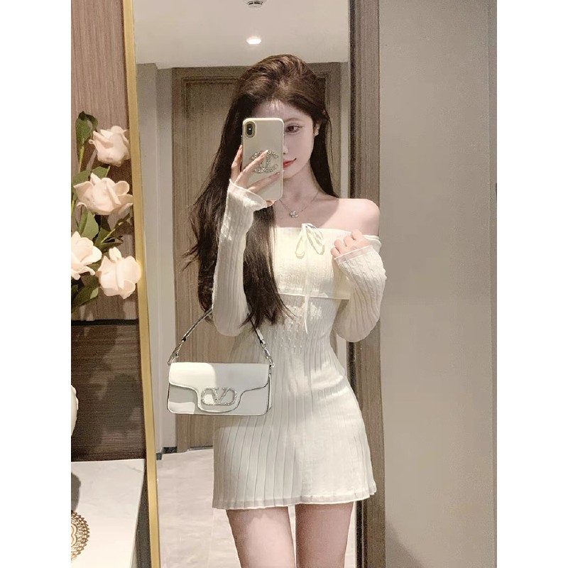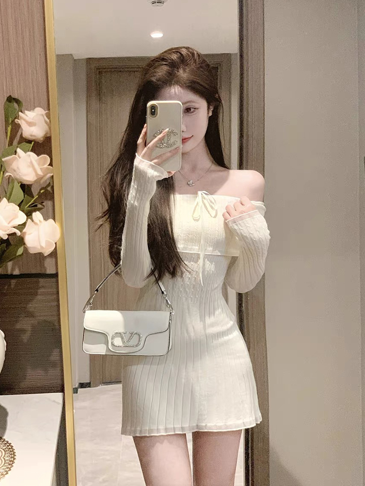 One Shoulder Knitted Dress Women, Slim Fit Waist, Off Shoulder S – Fall Fits