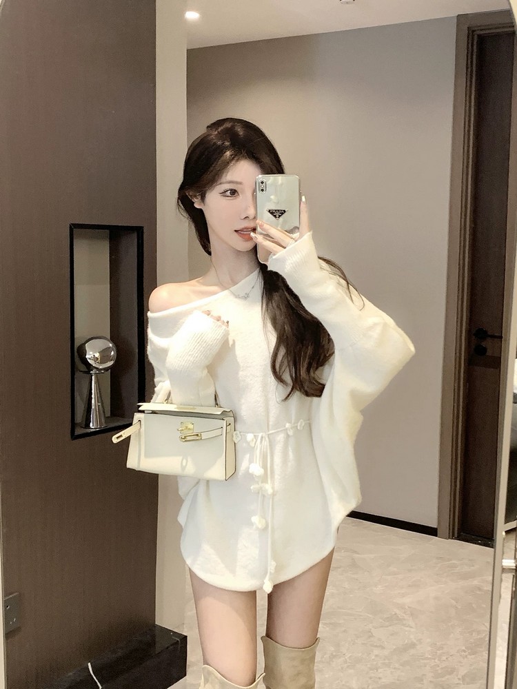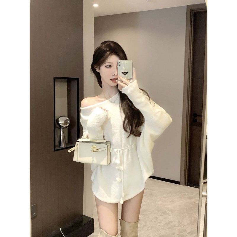 Off Shoulder Knitted Mini Dress Women Loose Fit, Neckline, Autum – Fall Fits