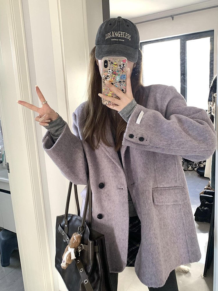 Petite Loose Fit Purple Woolen Suit Coat Women Short Length Co – Winter Fits