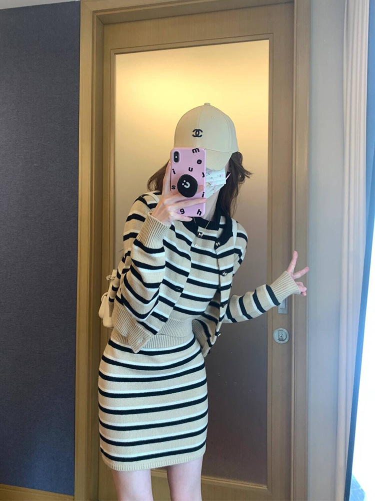 Petite Striped Knitted Cardigan Set Women, Short Sleeve – Fall Outfits Women