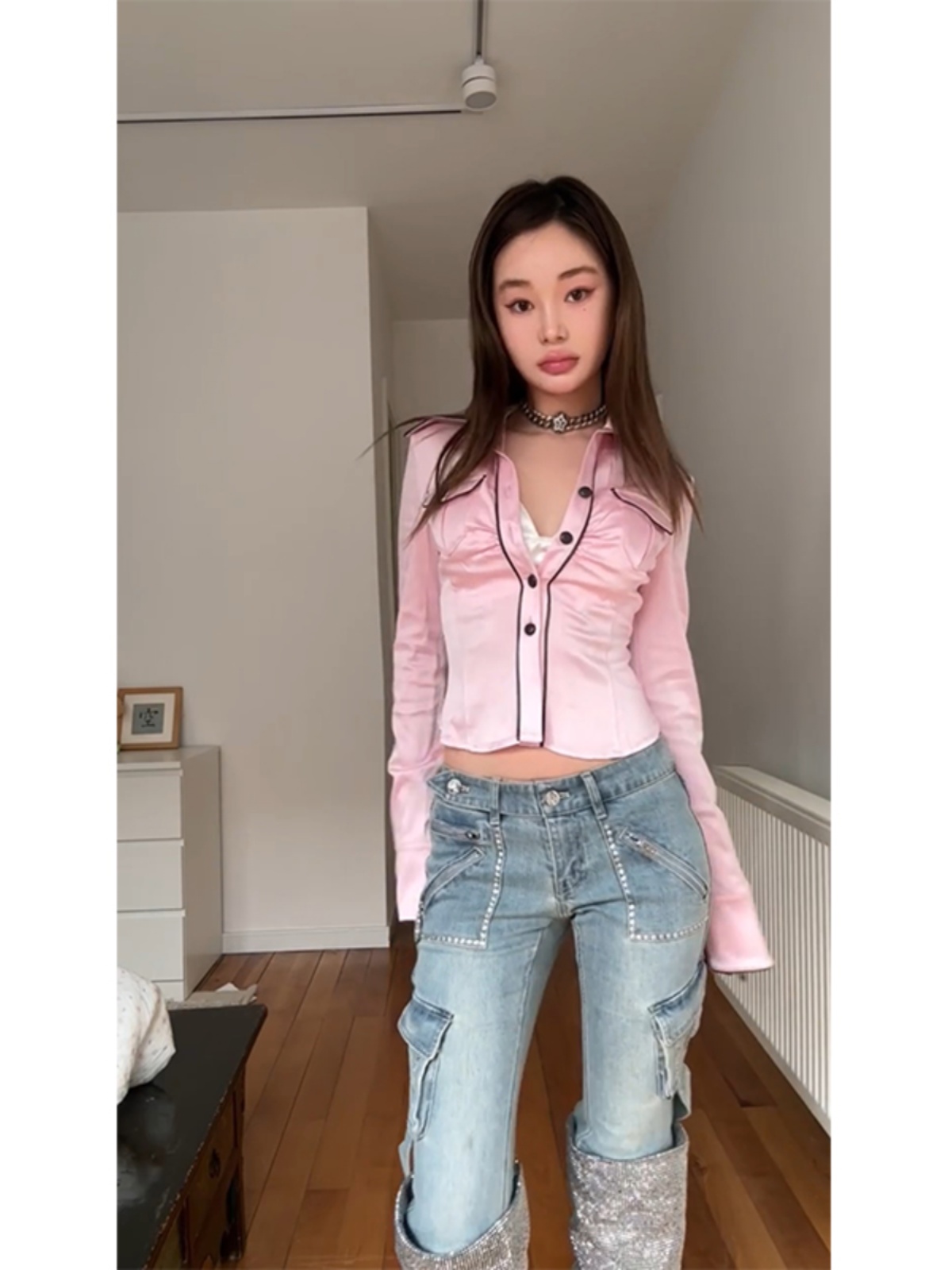 Barbie Pink Acetate Satin Shirt Women Spring, Small Fragrant Wind, Casual Top High-quality product featuring spring outfits, easy costumes women, cute everyday outfits and more. Modern design that fits the latest trends. Premium materials ensure durability and comfort. Order now for special offers! Product designed with attention to every detail. Suitable for all occasions and personal styles.