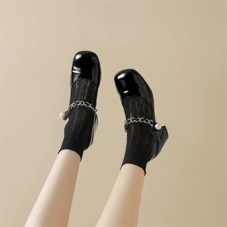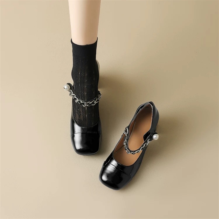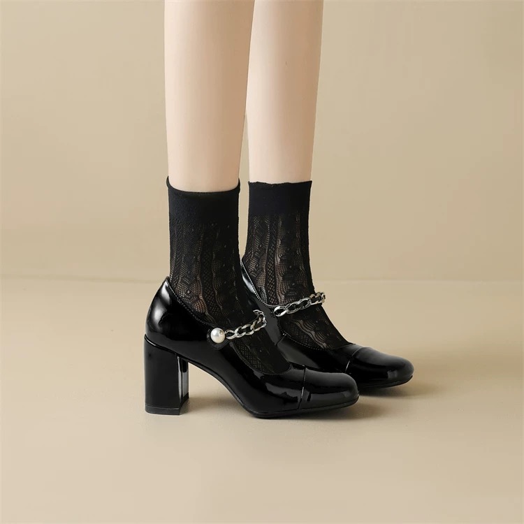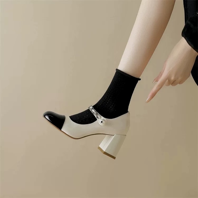 Step into the spotlight with our stunning Black and White Color-Blocking Pearl Buckle Mary Jane Chunky High Heels for Women. These trendy heels feature a chic color-block design, comfortable chunky heel, and an elegant pearl buckle that adds a touch of sophistication to any outfit. Perfect for day-to-night wear, these versatile shoes promise a comfortable fit while ensuring you stand out in style. Don’t miss out on this fashion-forward addition to your wardrobe add to your cart today!