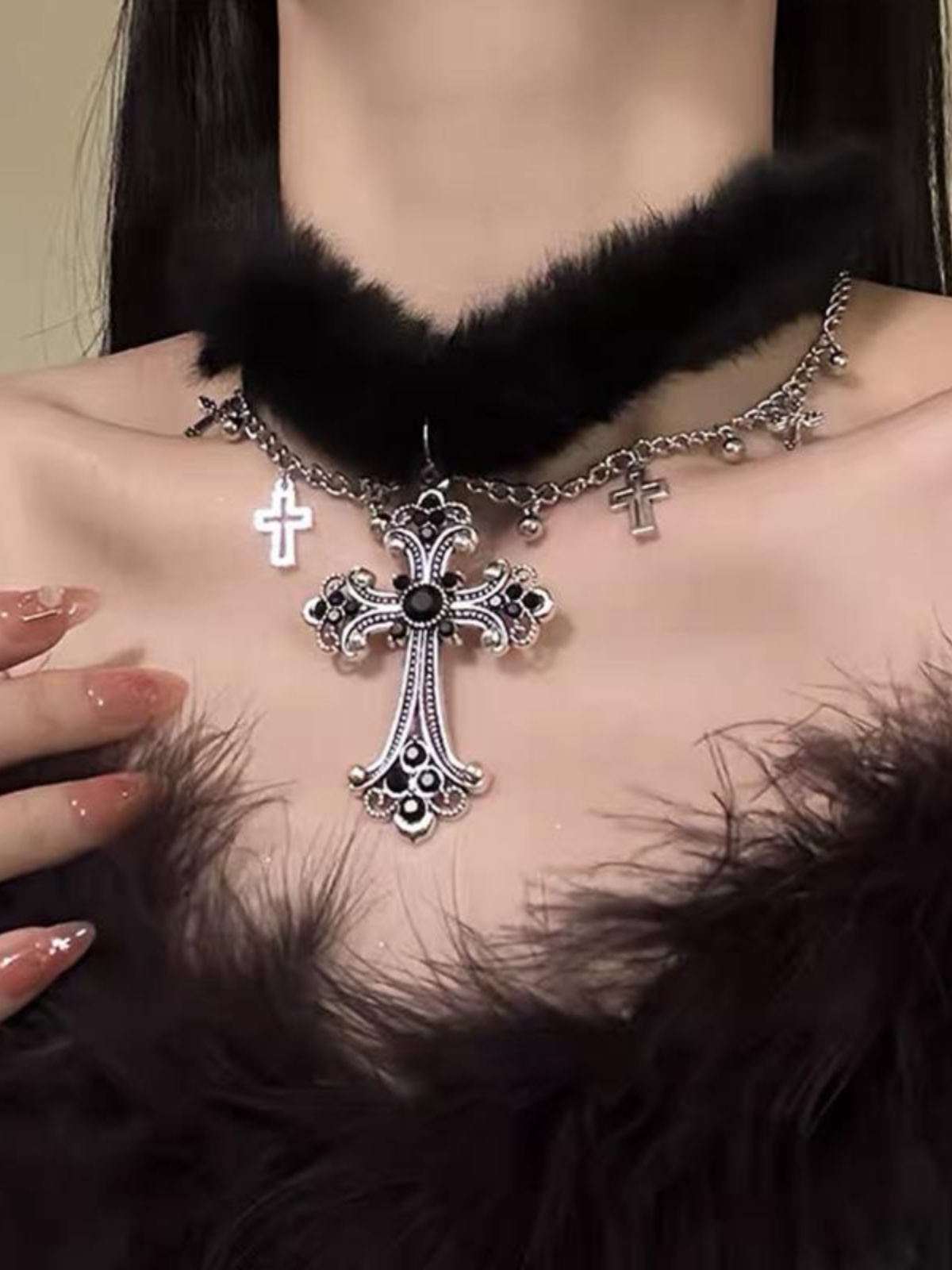 Black Plush Y2K Gothic Cross Necklace Choker Dark Sweet Cool Neck Chain, Collarbone High-quality product featuring black corset halloween costume, easy halloween costume, vampire costume aesthetic and more. Modern design that fits the latest trends. Premium materials ensure durability and comfort. Order now for special offers! Product designed with attention to every detail. Suitable for all occasions and personal styles.