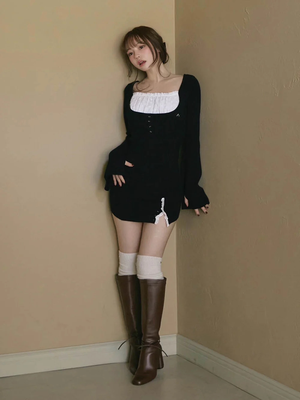 Surprisingly well-made for the price— a simple design that fits any outfit, Small touch, big difference. Glad I picked Black Low Neck Long Sleeve Dress Slit Slim Fit Short Skirt, Early Spring, Y2K up.