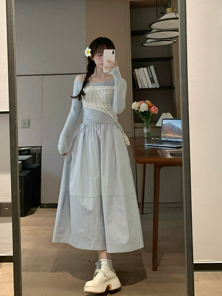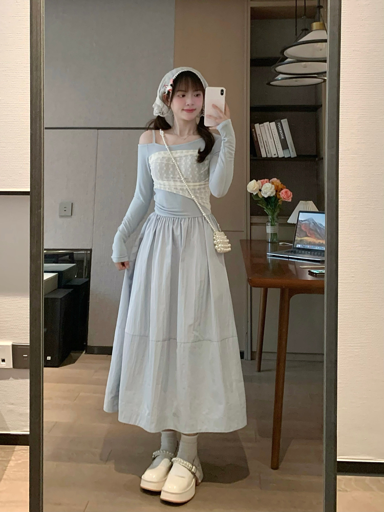 Blue Shoulder Dress, WaiCinched Slim Fit Spring/Summer High-quality product featuring spring outfit, spring outfits, fall fits and more. Modern design that fits the latest trends. Premium materials ensure durability and comfort. Order now for special offers! Product designed with attention to every detail. Suitable for all occasions and personal styles.