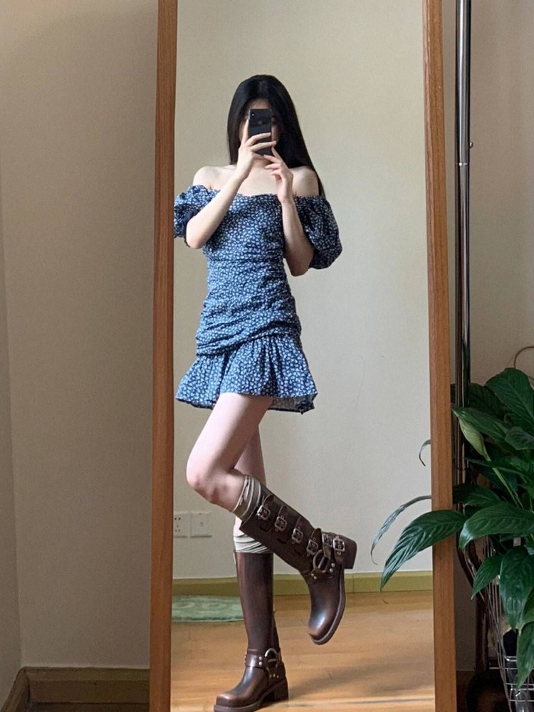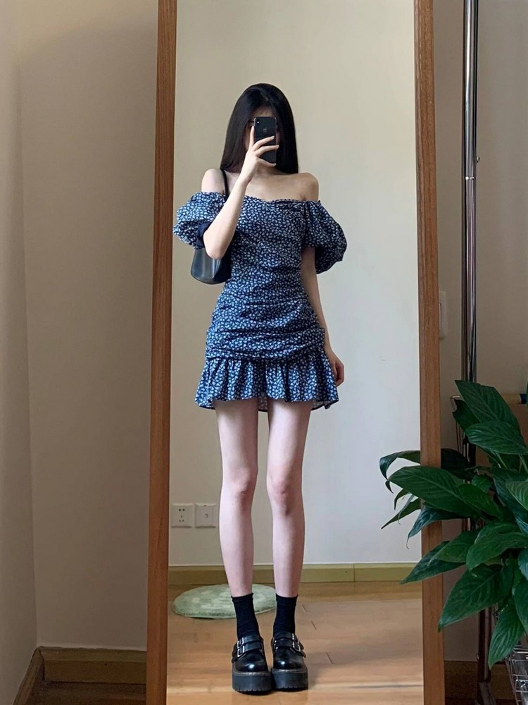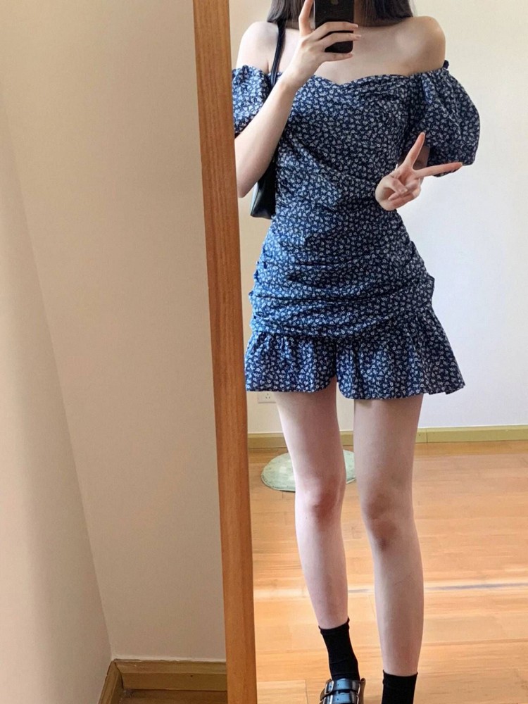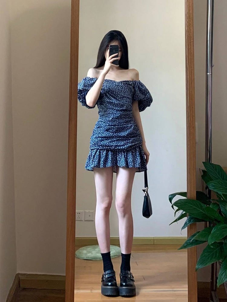 Blue Floral Dress Women ummer Off Shoulder, Puff Sleeves, Effect, Short Skirt High-quality product featuring going out outfits, skirt outfits, fashion outfits and more. Modern design that fits the latest trends. Premium materials ensure durability and comfort. Order now for special offers! Product designed with attention to every detail. Suitable for all occasions and personal styles.