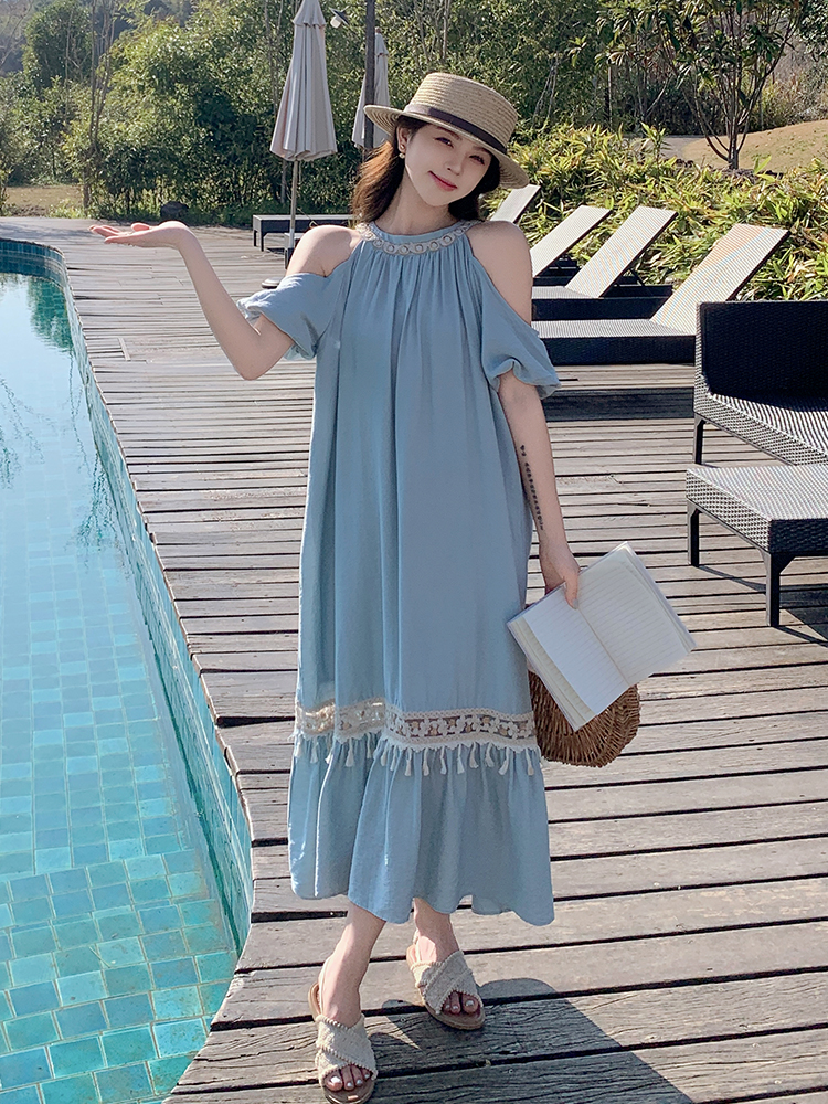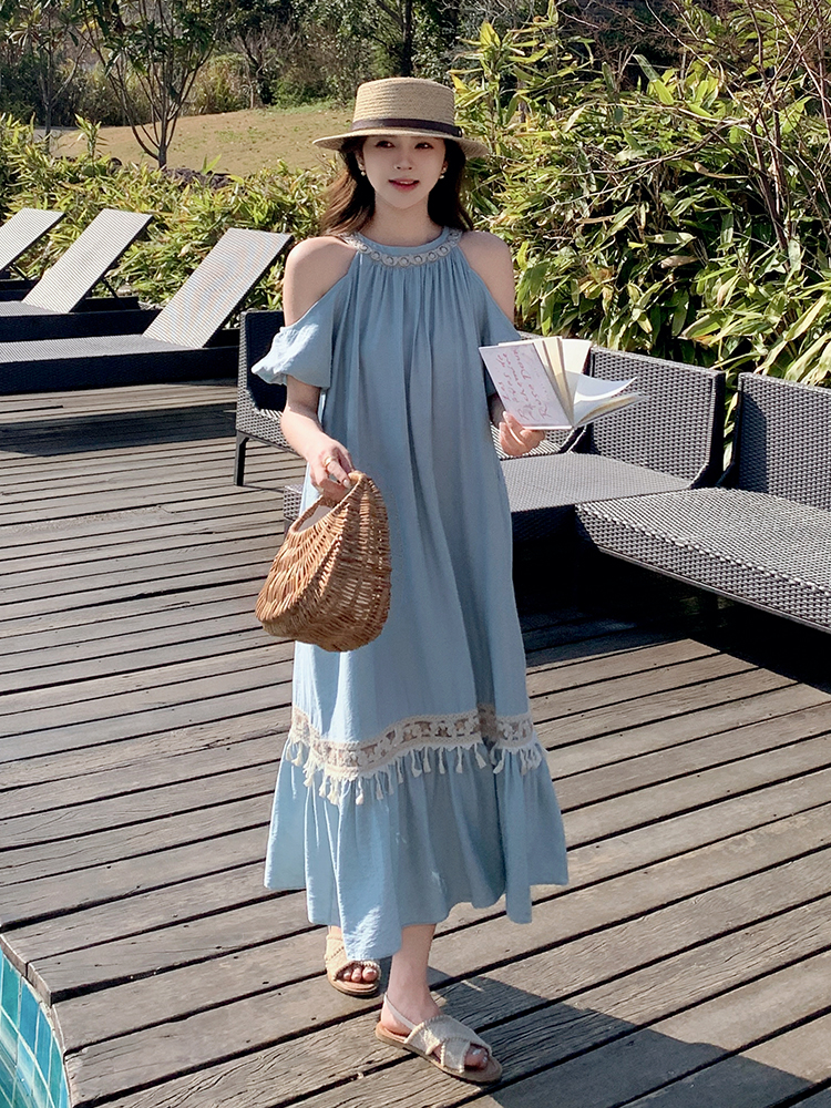 Blue Off Shoulder Halter Dress Women ummer Loose Fit Flattering Long Skirt High-quality product featuring graduation dress, hoco dresses, going out outfits and more. Modern design that fits the latest trends. Premium materials ensure durability and comfort. Order now for special offers! Product designed with attention to every detail. Suitable for all occasions and personal styles.