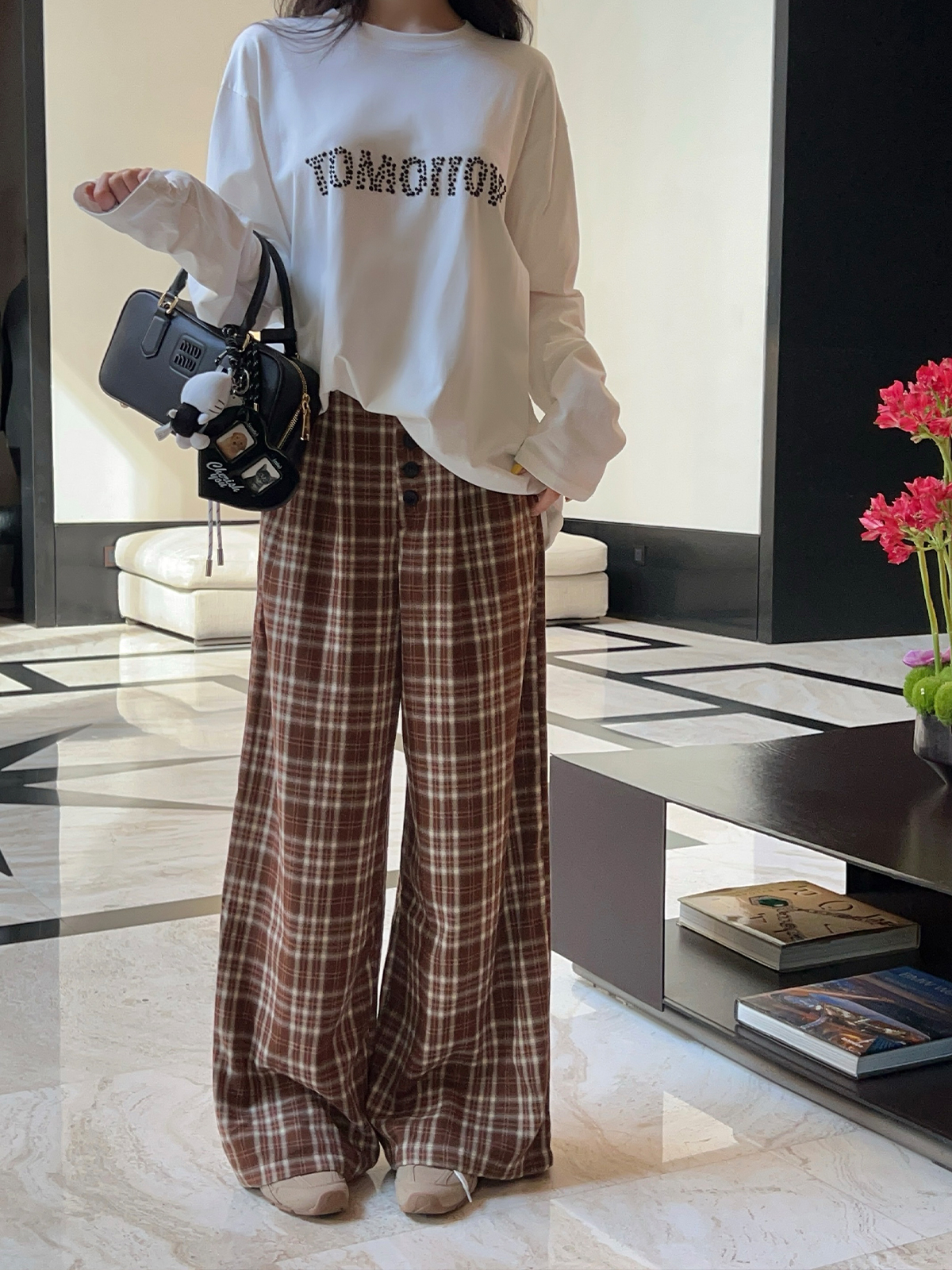Exactly what I needed, especially— a simple design that fits any outfit, Small touch, big difference. Glad I picked Caramel Plaid High WaiWide Leg Pants Women Loose Straight Fit Casual Autumn Winter up.