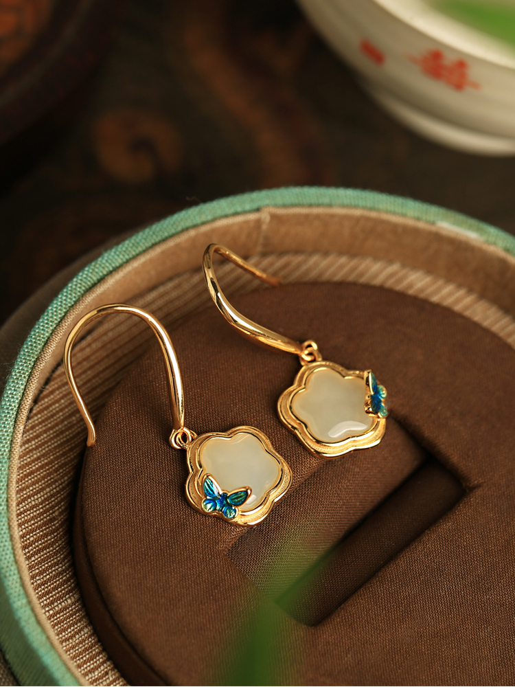 I hesitated at first, but after a week of use— color accuracy—looks like the photos, Small touch, big difference. Glad I picked Enamel Butterfly Plum Blossom EarringsPure Silver Hetian Jade Crystal Ear Accessories Women up.