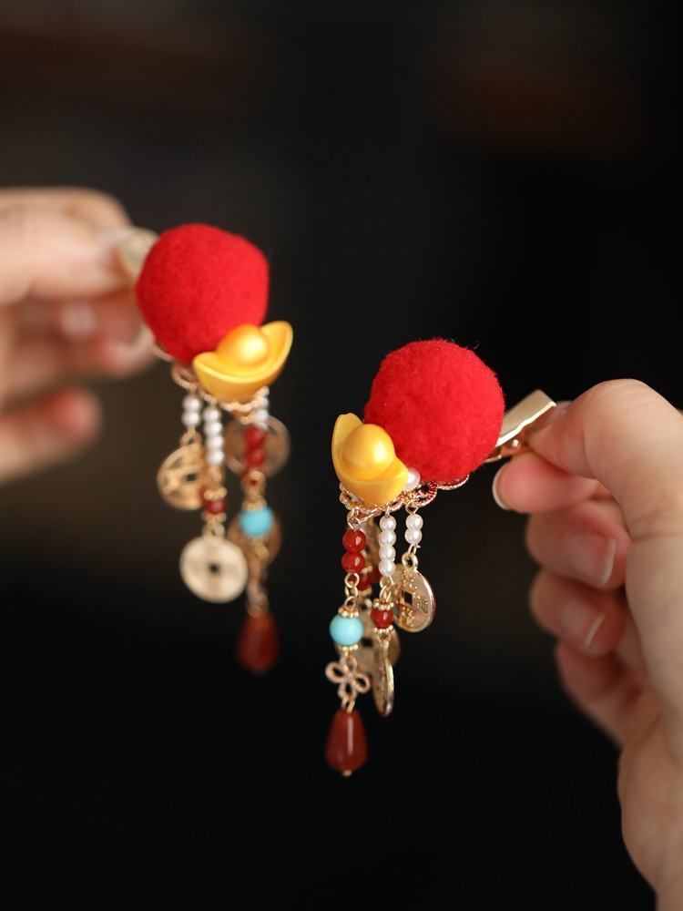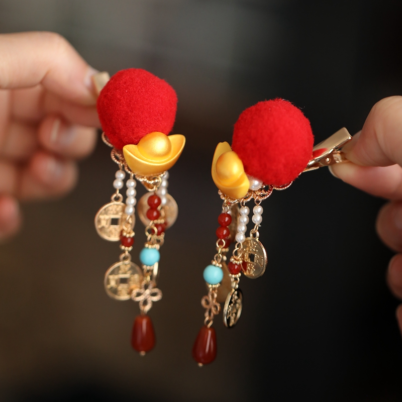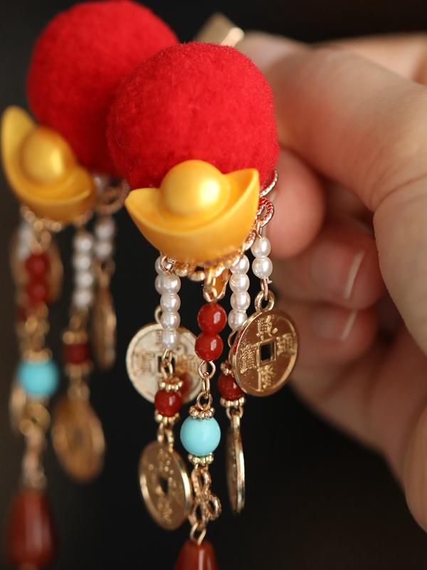 Five Red Ingot Hairpin Copper Coin Pom Pom Hair Accessories Autumn Winter New Year Celebration High-quality product featuring little red riding hood costume, party animal costume, fall clothing trends 2025 and more. Modern design that fits the latest trends. Premium materials ensure durability and comfort. Order now for special offers! Product designed with attention to every detail. Suitable for all occasions and personal styles.