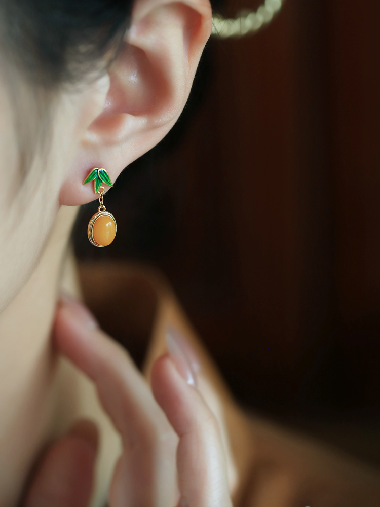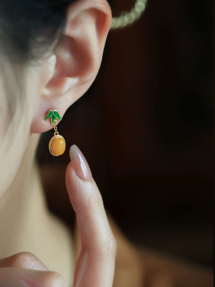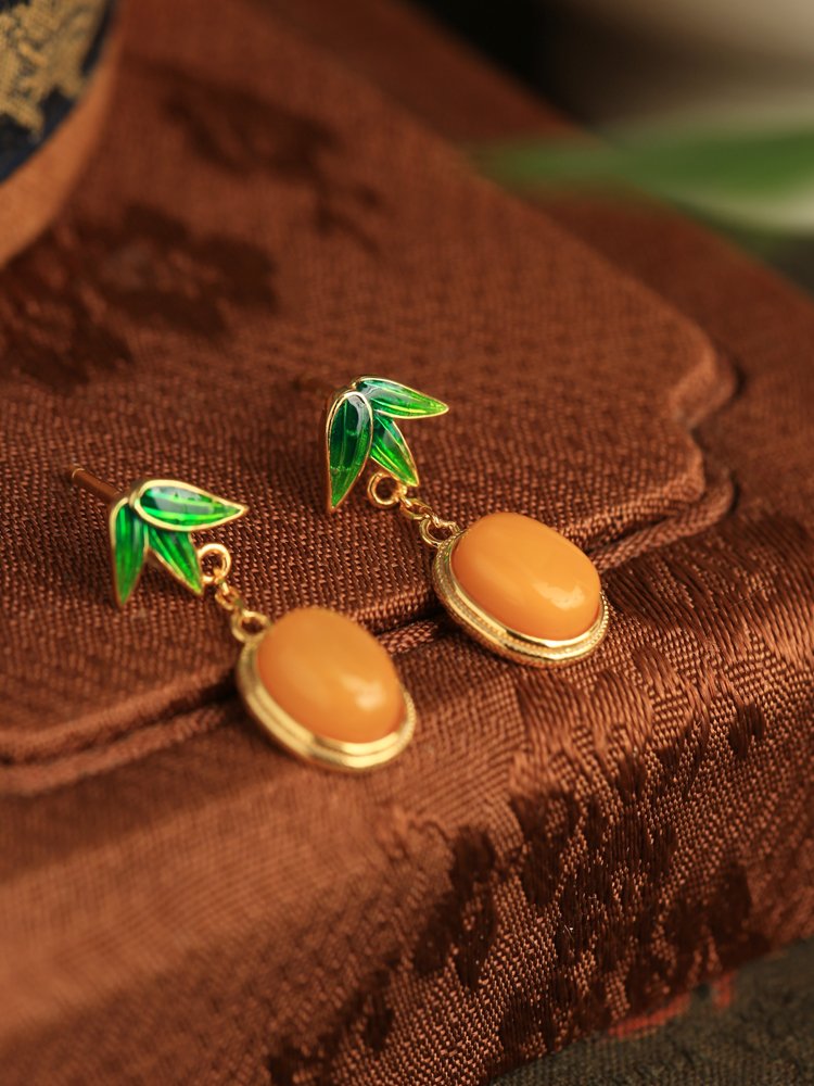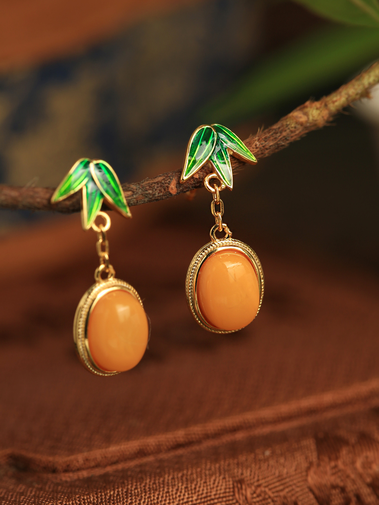 I hesitated at first, but after a week of use— color accuracy—looks like the photos, Small touch, big difference. Glad I picked Natural Beeswax Silver Earrings Bamboo Leaf Enamel, Yellow Jade, Gold Inlaid Ear Pendants Women up.