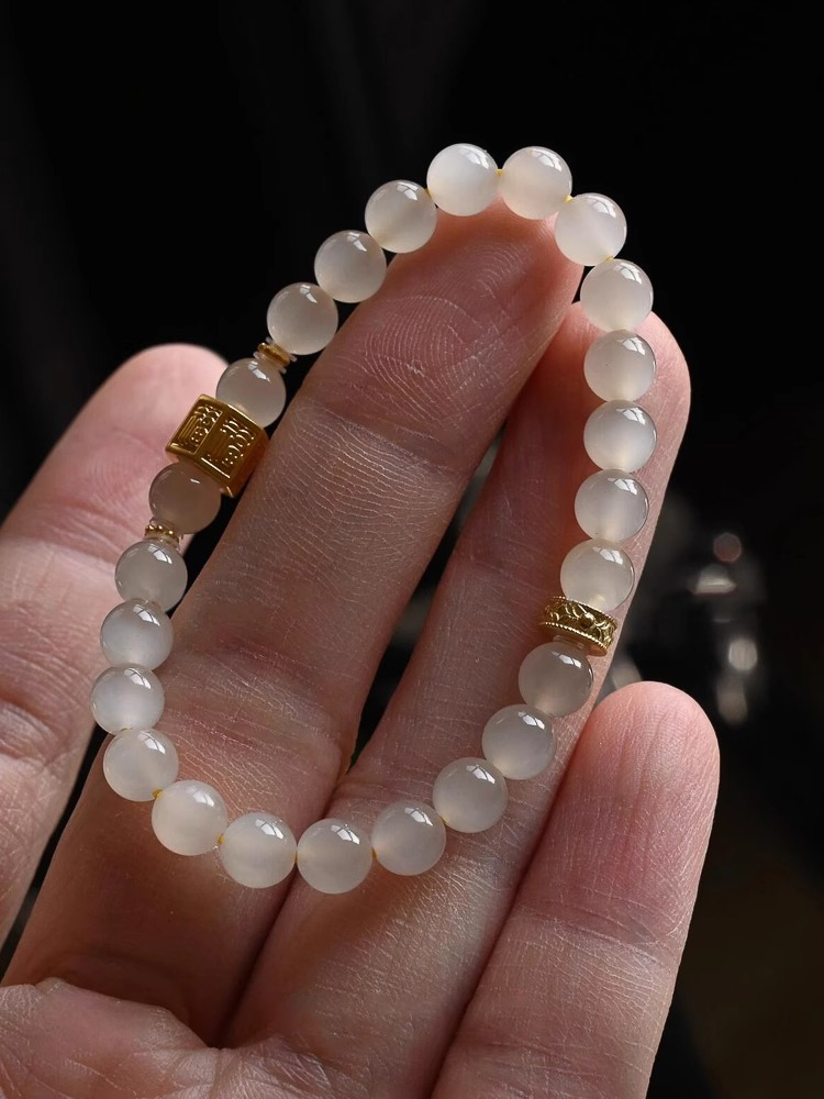Elevate your style with our Classy Natural Translucent Chalcedony Bracelet for Women, featuring a stunning decorative lucky bead design that exudes elegance. This exquisite bracelet not only enhances any outfit but also offers a sense of tranquility and balance, making it the perfect accessory for both everyday wear and special occasions. Treat yourself or delight a loved one with this thoughtful gift that combines beauty and meaning add to your cart now and embrace the charm of chalcedony!