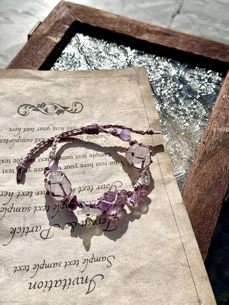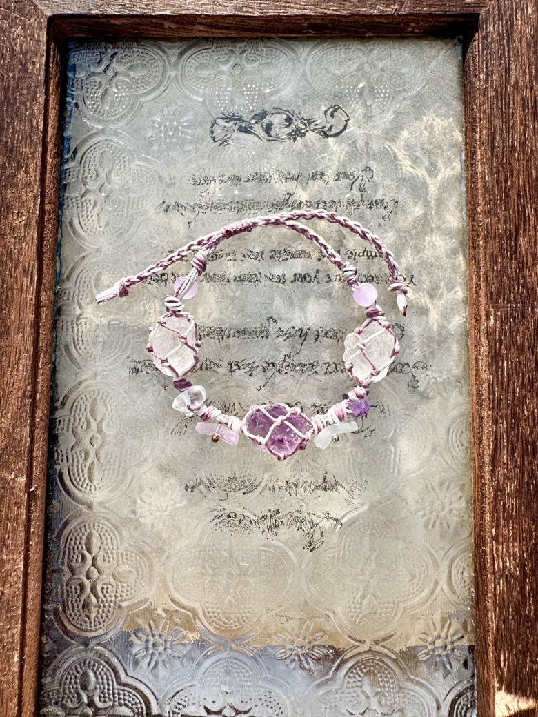 Elevate your style with our stunning Crystal Purple Macrame Bracelet, a perfect blend of boho chic and modern elegance. Handcrafted with love, this unique accessory features intricate macrame detailing and sparkling crystals that catch the light beautifully, making it a trendy addition to any outfit. Its adjustable fit ensures comfort for all wrist sizes, allowing you to showcase your individuality effortlessly. Don’t miss out on this must-have piece add to your cart today and embrace the essence of bohemian fashion!