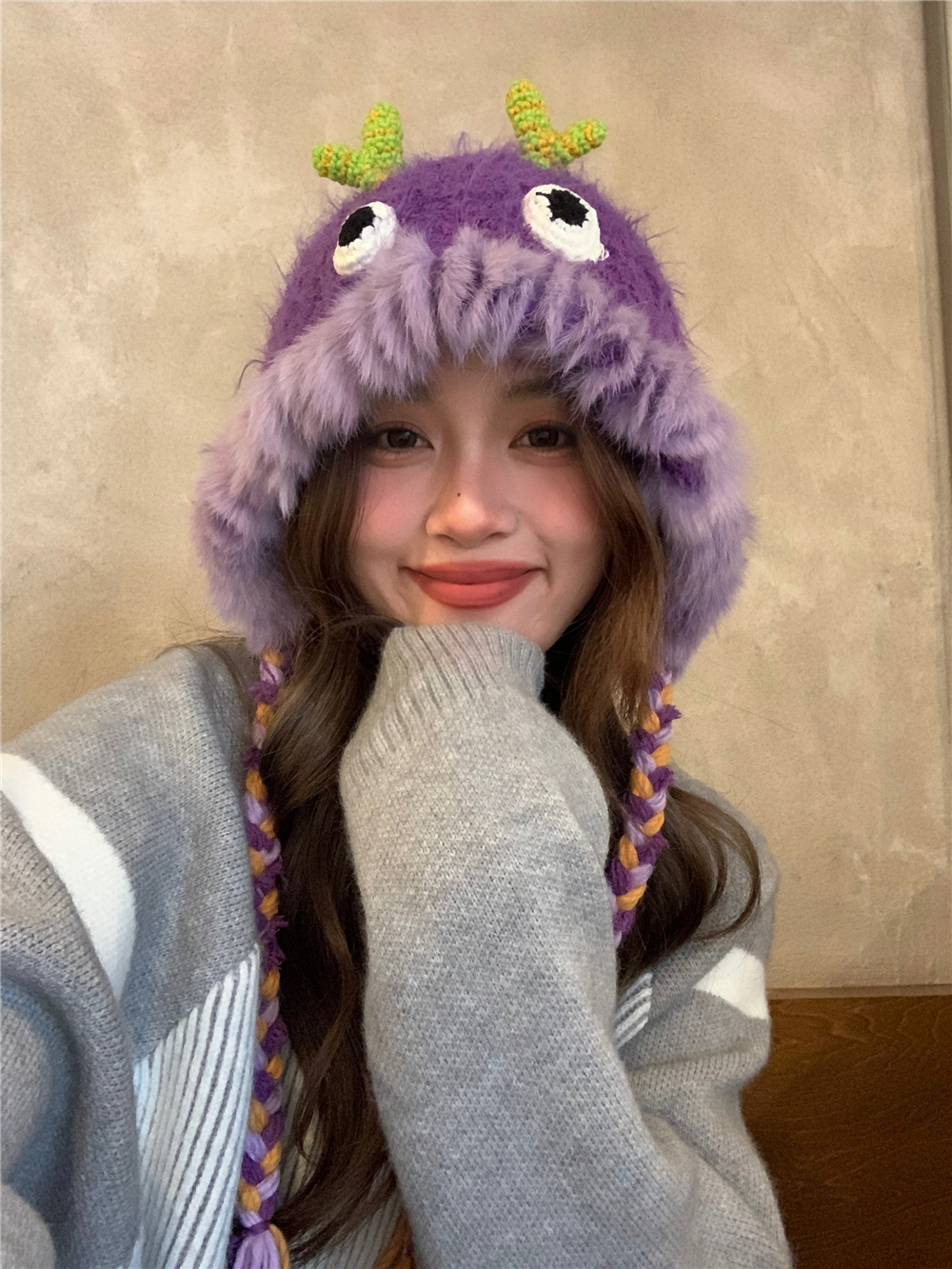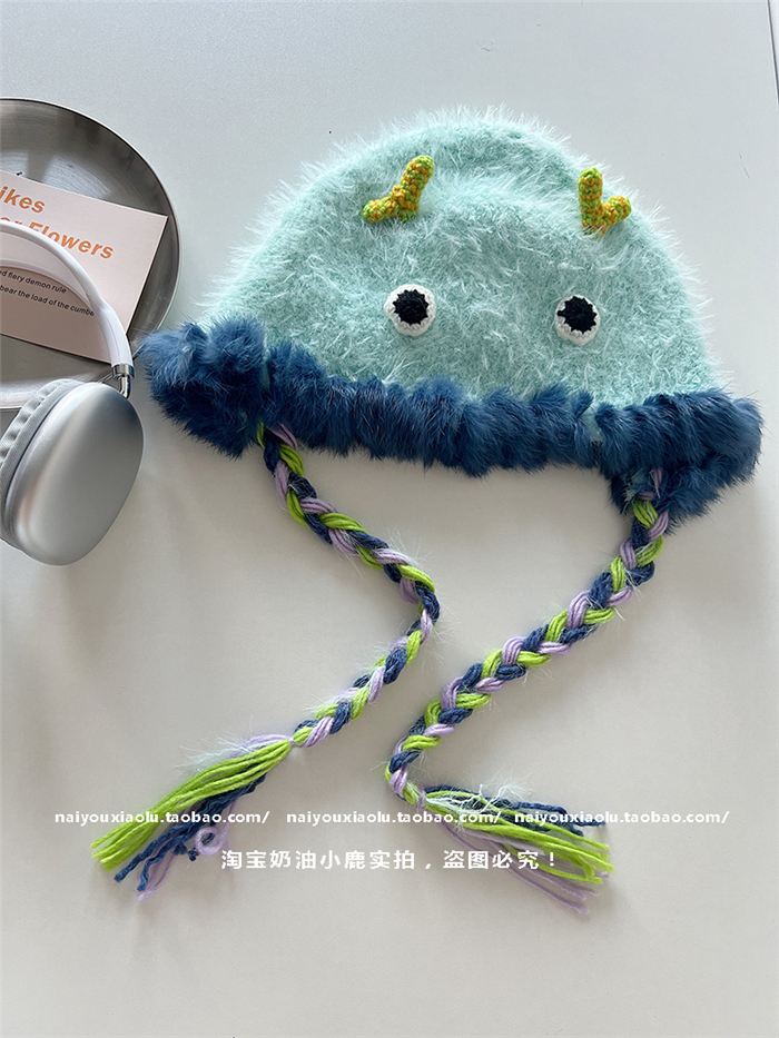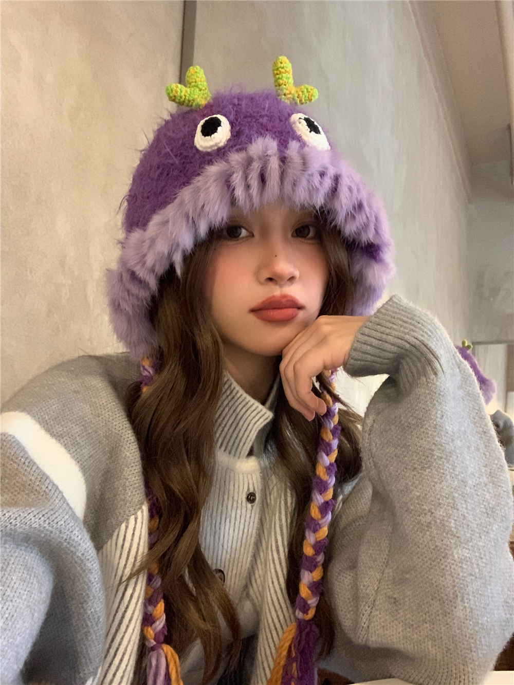 Cute Rabbit Fur Little Monster Hat Women Plush Wool Winter Hat Ear Protection, Cozy Autumn High-quality product featuring warm winter outfits, alice in wonderland costume, winter fits and more. Modern design that fits the latest trends. Premium materials ensure durability and comfort. Order now for special offers! Product designed with attention to every detail. Suitable for all occasions and personal styles.