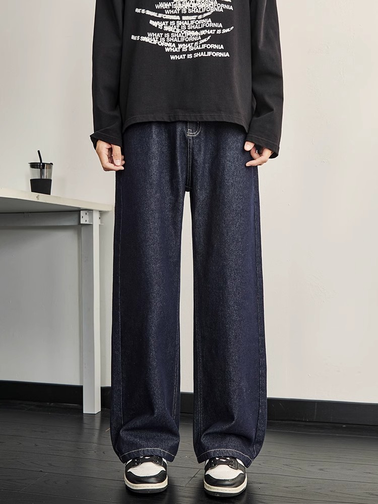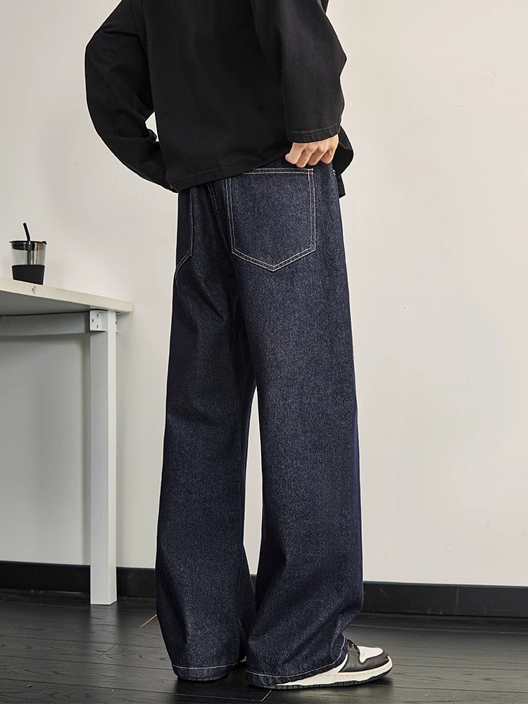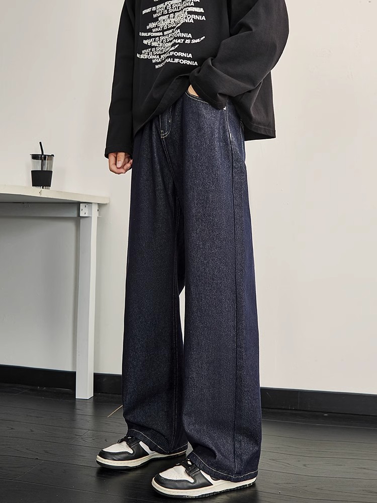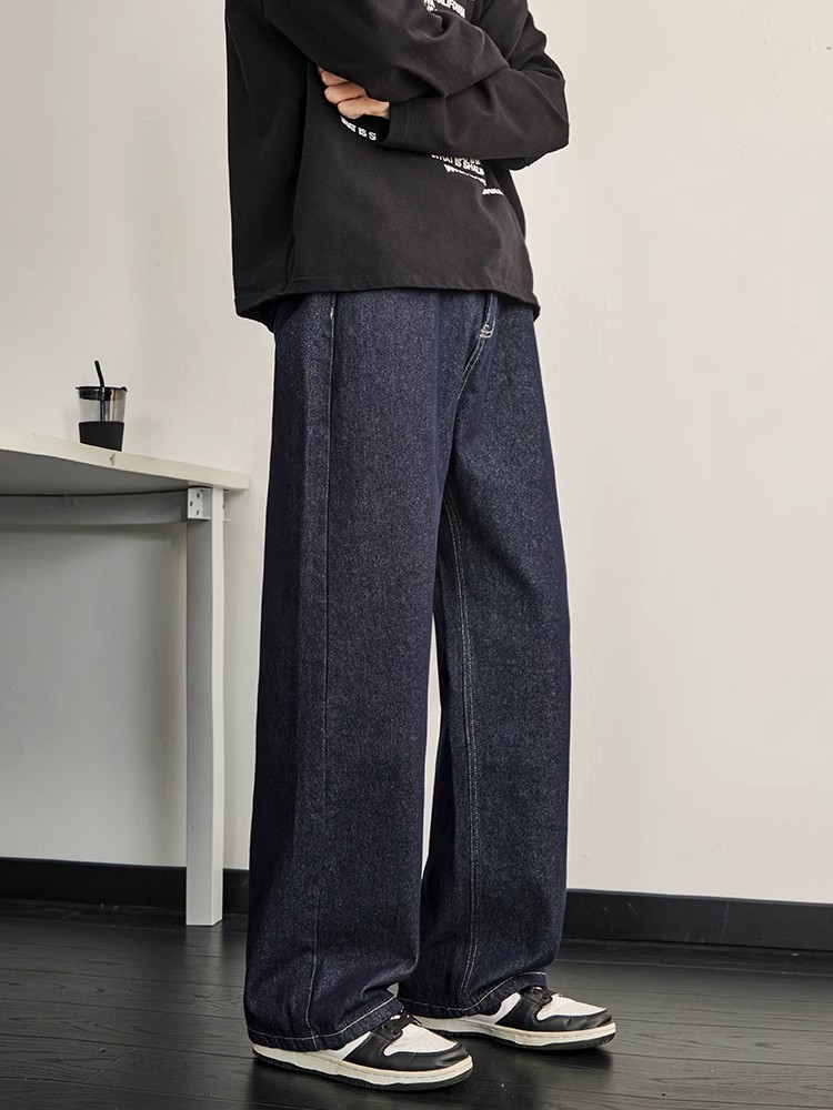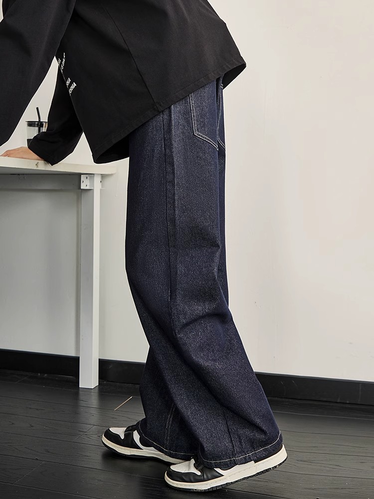 Dark Blue Denim Men Wide Leg Clean Fit Pants Vintage Slim Straight Spring, Summer High-quality product featuring summer fits, spring outfits, fall fits and more. Modern design that fits the latest trends. Premium materials ensure durability and comfort. Order now for special offers! Product designed with attention to every detail. Suitable for all occasions and personal styles.