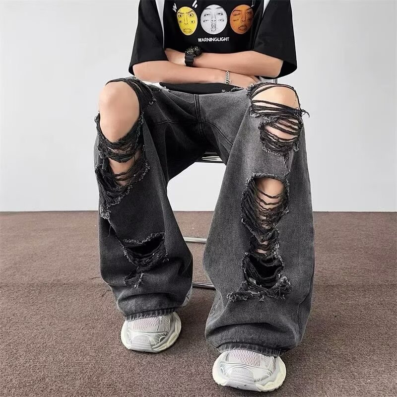 Upgrade your summer wardrobe with our Distressed Baggy Men’s Streetwear Jeans, designed for the modern man who values style and comfort. Featuring a loose wide-leg fit and straight-leg silhouette, these trousers provide ultimate breathability and ease for casual outings. The distressed detailing adds a rugged touch, making them perfect for any high street look. Embrace effortless style and unmatched comfort add these versatile jeans to your cart today!