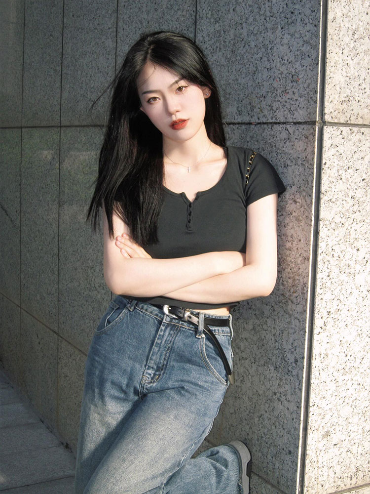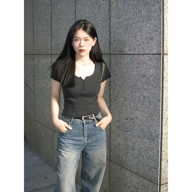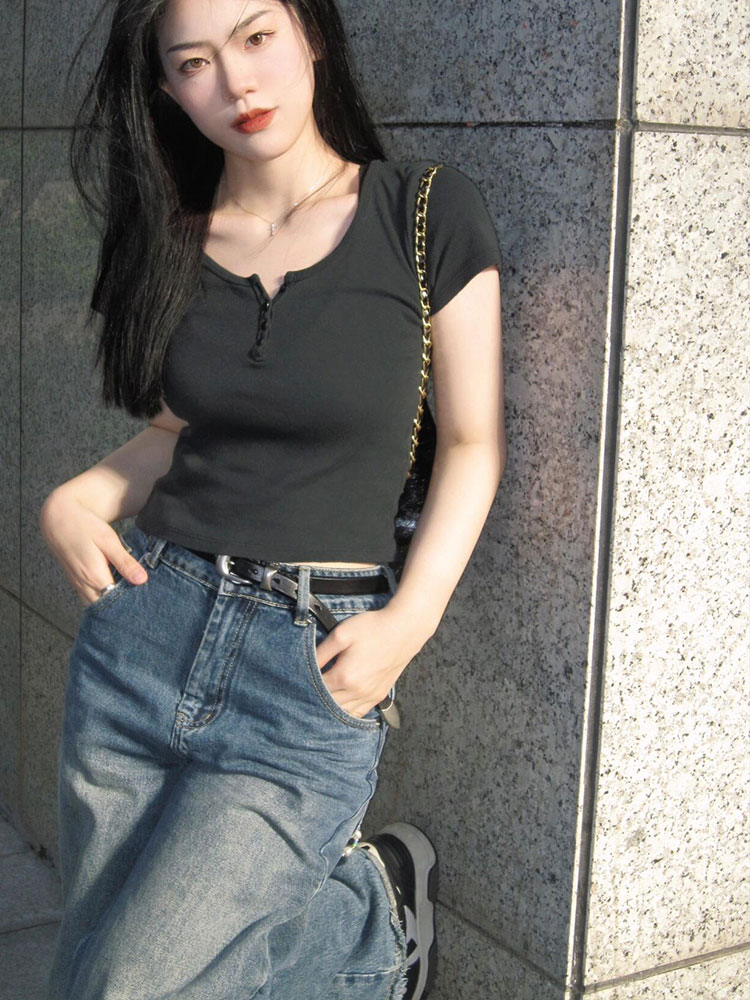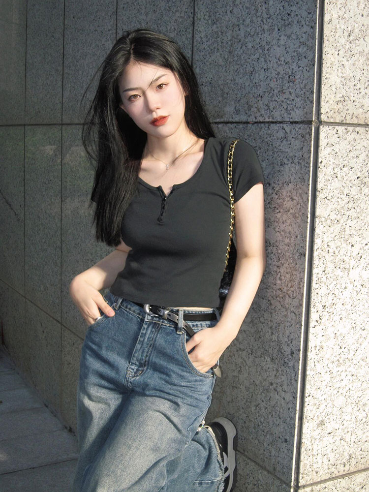 Exactly what I needed, especially— a simple design that fits any outfit, Small touch, big difference. Glad I picked Eccentric Retro Short Sleeve Summer Casual Slim Fit Top, Y2K up.