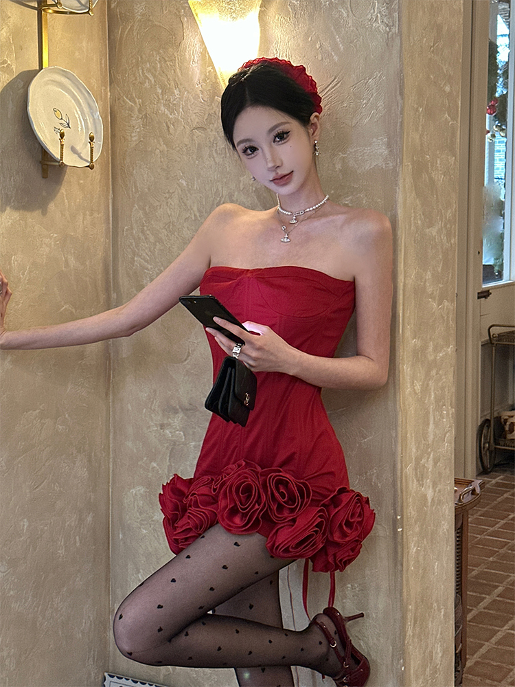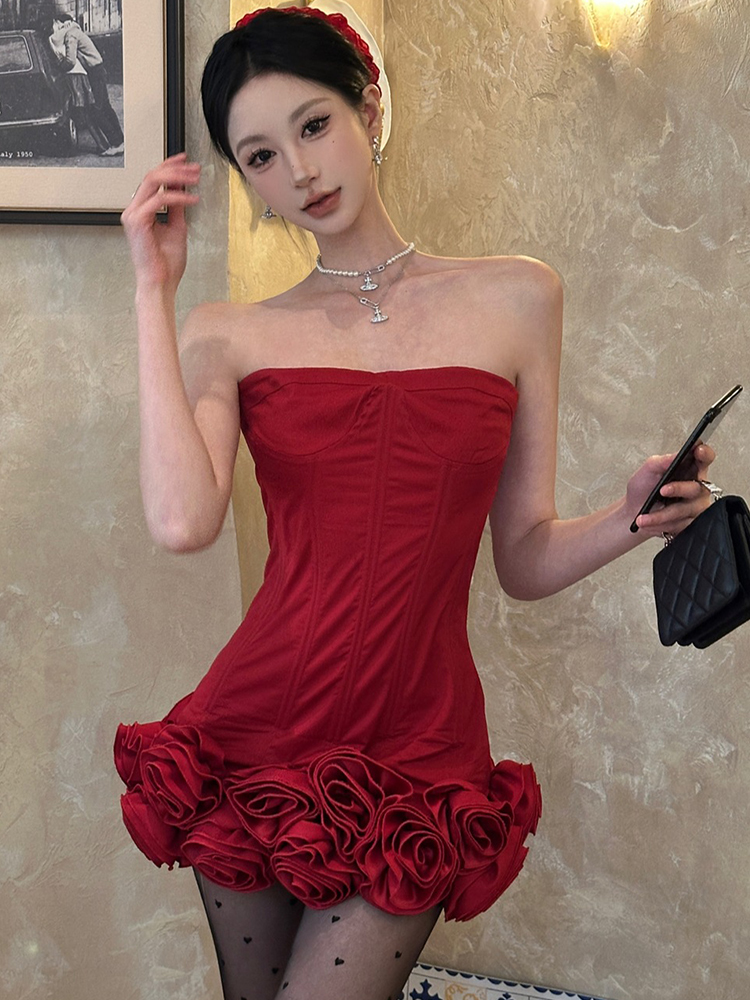 Eccentric Off Shoulder Red Floral Fishbone Strapless Bodycon Dress Effect High-quality product featuring outfit inspo, fashion outfits, coquette outfit and more. Modern design that fits the latest trends. Premium materials ensure durability and comfort. Order now for special offers! Product designed with attention to every detail. Suitable for all occasions and personal styles.