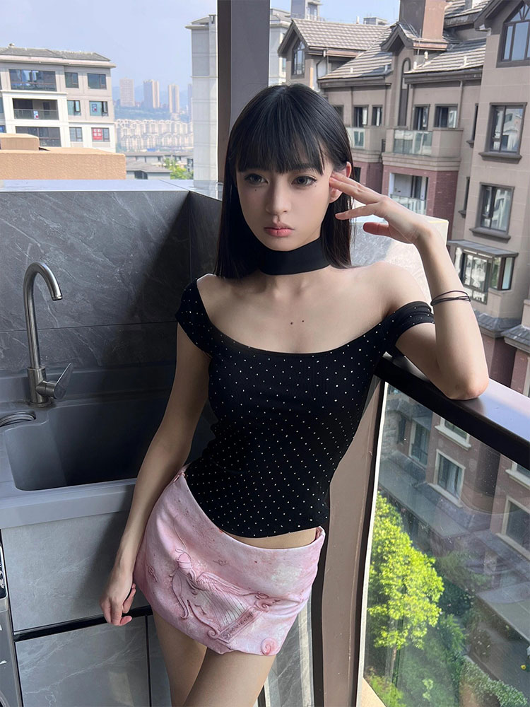 Step into the summer spotlight with our Eccentric Retro Rhinestone One-Shoulder Short Sleeve Slim-Fit T-Shirt, designed to elevate your fashion game. This sexy American-style top features a unique one-shoulder design adorned with sparkling rhinestones, making it the perfect statement piece for any occasion. Its slim fit hugs your curves in all the right places, ensuring you look fabulous whether you’re at a summer festival or a night out with friends. Don’t miss out on this must-have addition to your wardrobe add it to your cart today!