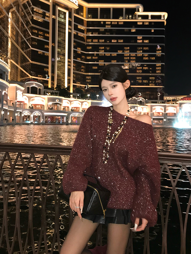 Elevate your evening wardrobe with our Elegant Bordeaux Red Off-Shoulder Sweater, adorned with heavy sequins and intricate embroidery. This chic piece effortlessly combines 90s and Y2K styles, offering a flattering fit that accentuates your silhouette while adding a touch of glamour to any outfit. Perfect for a night out or a special occasion, this sweater will make you stand out in style. Don’t miss out on this must-have addition to your collection add to your cart today!
