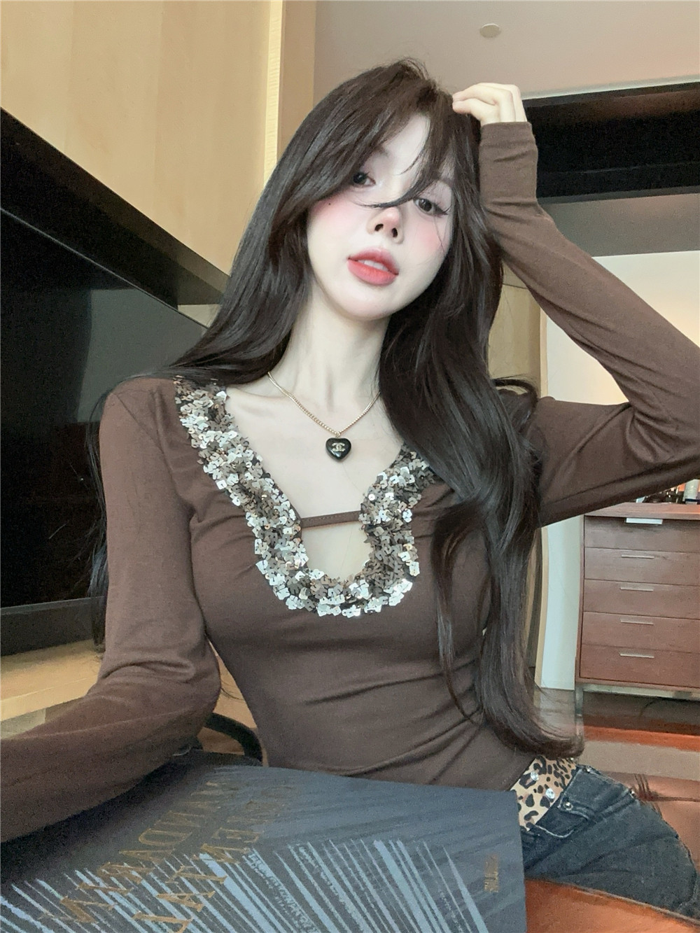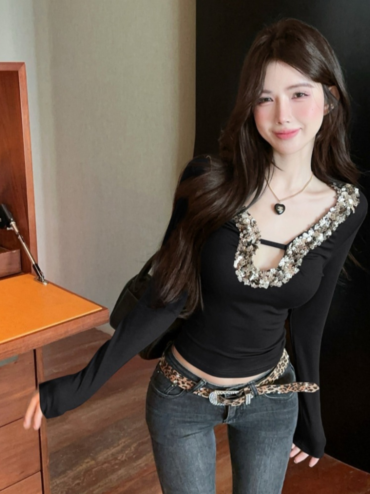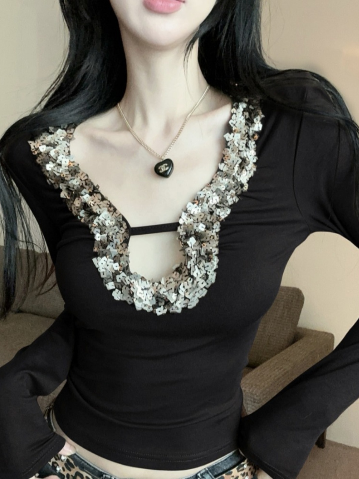 Elevate your autumn and winter wardrobe with our Elegant French-Style Heavy Sequined Long Sleeve T-Shirt, designed for the fashion-forward individual. This stylish short top features a flattering fit that accentuates your silhouette, while the dazzling sequins add a touch of glamour perfect for any chic occasion. Don’t miss out on this essential piece that effortlessly combines comfort and sophistication add it to your cart today and shine wherever you go!