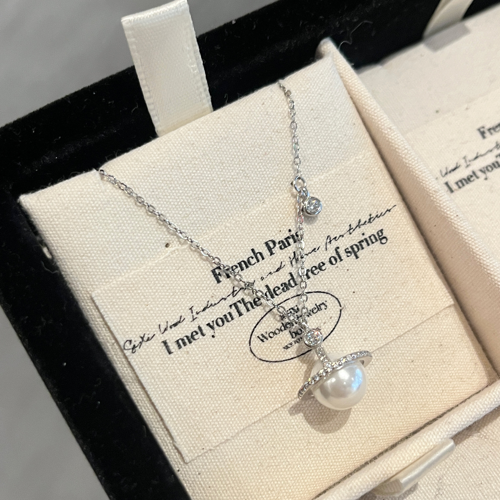S925 Pure Silver Small Universe Planet Pearl Necklace Women – Pretty Outfits