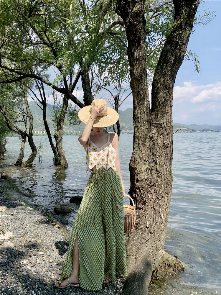 Elevate your beach vacation wardrobe with our Ethnic Style Women’s Beach Vacation Set, featuring a stunning Hollow V-Neck Camisole paired with flowy Wide-Leg Pants. This travel outfit embodies effortless chic, offering a relaxed fit that flatters all body types while ensuring maximum comfort during your adventures in Yunnan and Tibet. The intricate ethnic patterns and lightweight fabric make it perfect for sunny days and balmy evenings alike. Don’t miss out on this essential addition to your summer collection add to your cart and embrace your wanderlust today!