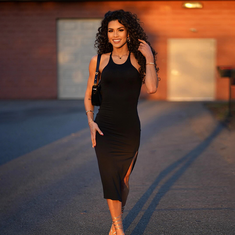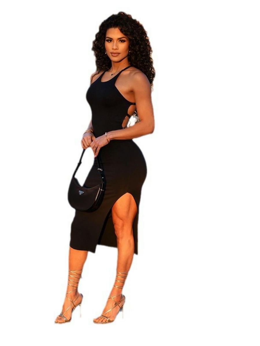 European, Women Backless Halter Neck Dress Split, Adjustable Cross Straps, Mid Length Skirt Leisure High-quality product featuring hoco dresses, vacation outfits, coquette outfit and more. Modern design that fits the latest trends. Premium materials ensure durability and comfort. Order now for special offers! Product designed with attention to every detail. Suitable for all occasions and personal styles.