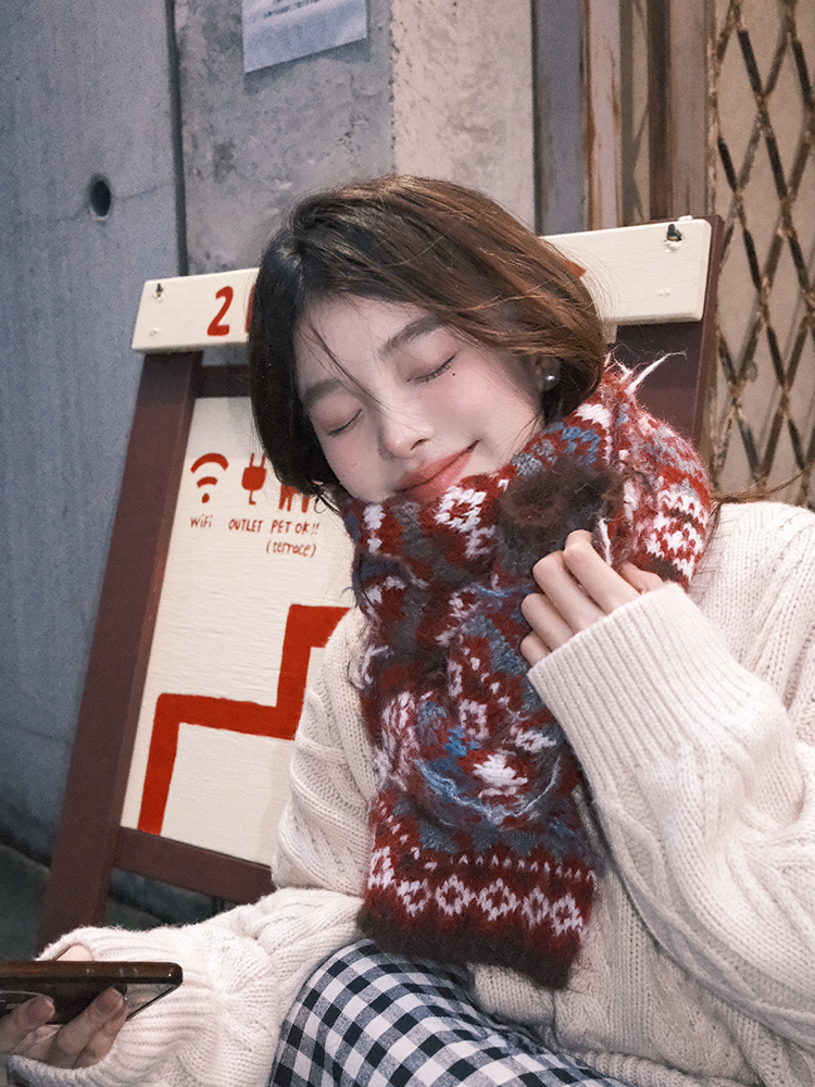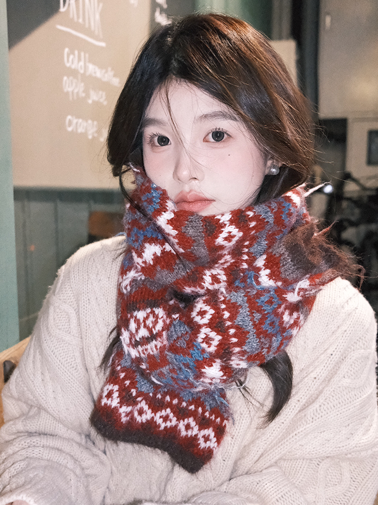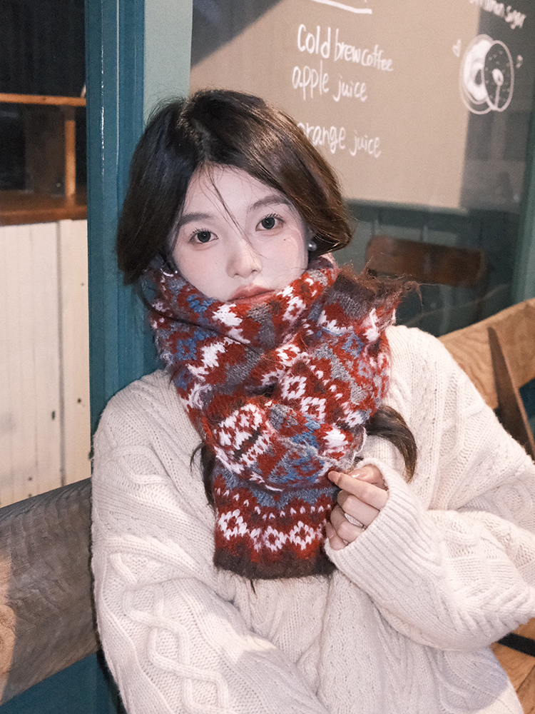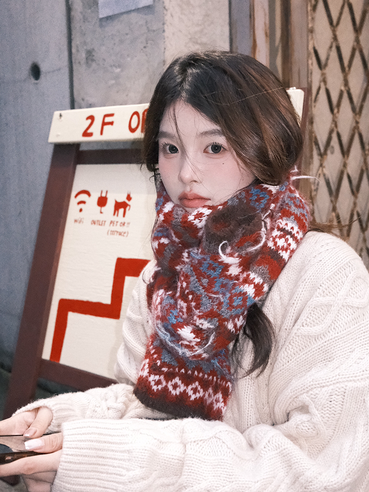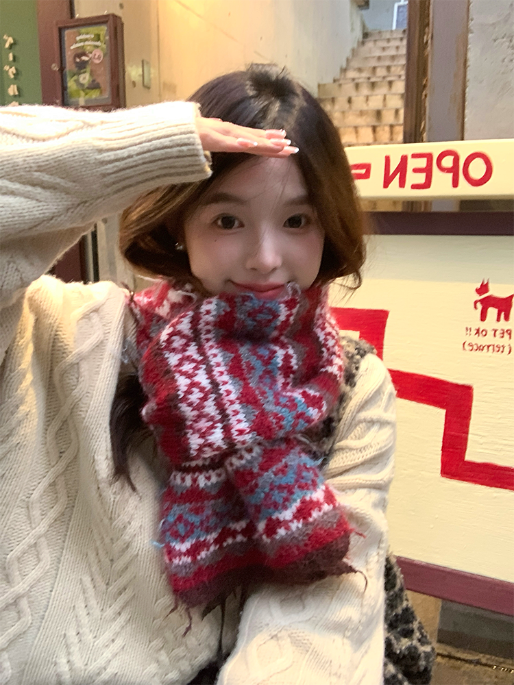 Fair Isle Red Jacquard Wool Scarf Women, Thickened Neck Warmer Autumn Winter, Cozy High-quality product featuring holiday outfits, winter fits, warm fall outfits and more. Modern design that fits the latest trends. Premium materials ensure durability and comfort. Order now for special offers! Product designed with attention to every detail. Suitable for all occasions and personal styles.