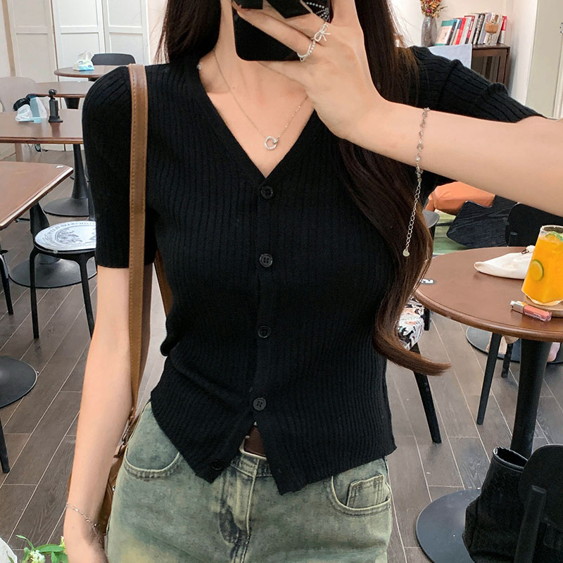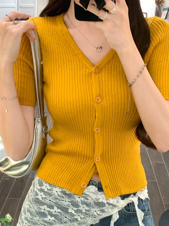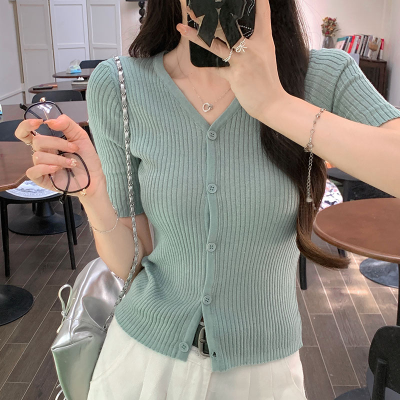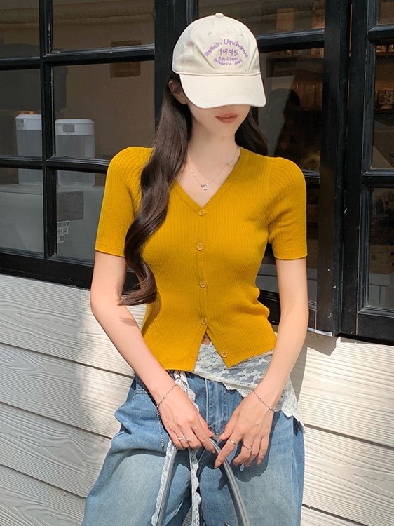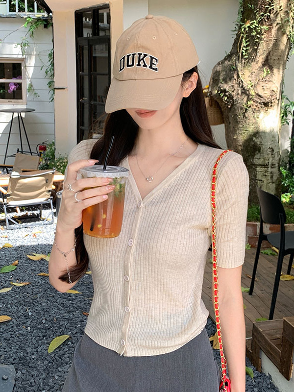 Fitted V- Neck Ice Silk Short Sleeve Knitted Top Cinched WaiSummer High-quality product featuring winter outfit, warm winter outfits, casual outfits winter and more. Modern design that fits the latest trends. Premium materials ensure durability and comfort. Order now for special offers! Product designed with attention to every detail. Suitable for all occasions and personal styles.