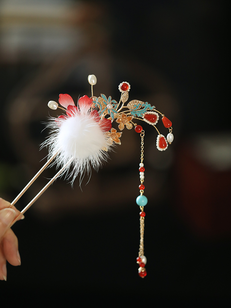 Elevate your autumn and winter hairstyles with our exquisite Fluffy U-Shaped Hairpin, adorned with charming step-shake tassels that capture the essence of ancient style. Crafted to complement your Hanfu ensembles, this stunning accessory not only enhances your look but also provides a secure fit for any occasion. Perfect for adding a touch of elegance and tradition to your outfits, don’t miss out on this must-have piece add to your cart today and transform your hairstyle into a work of art!
