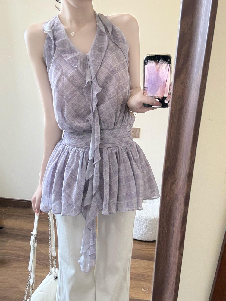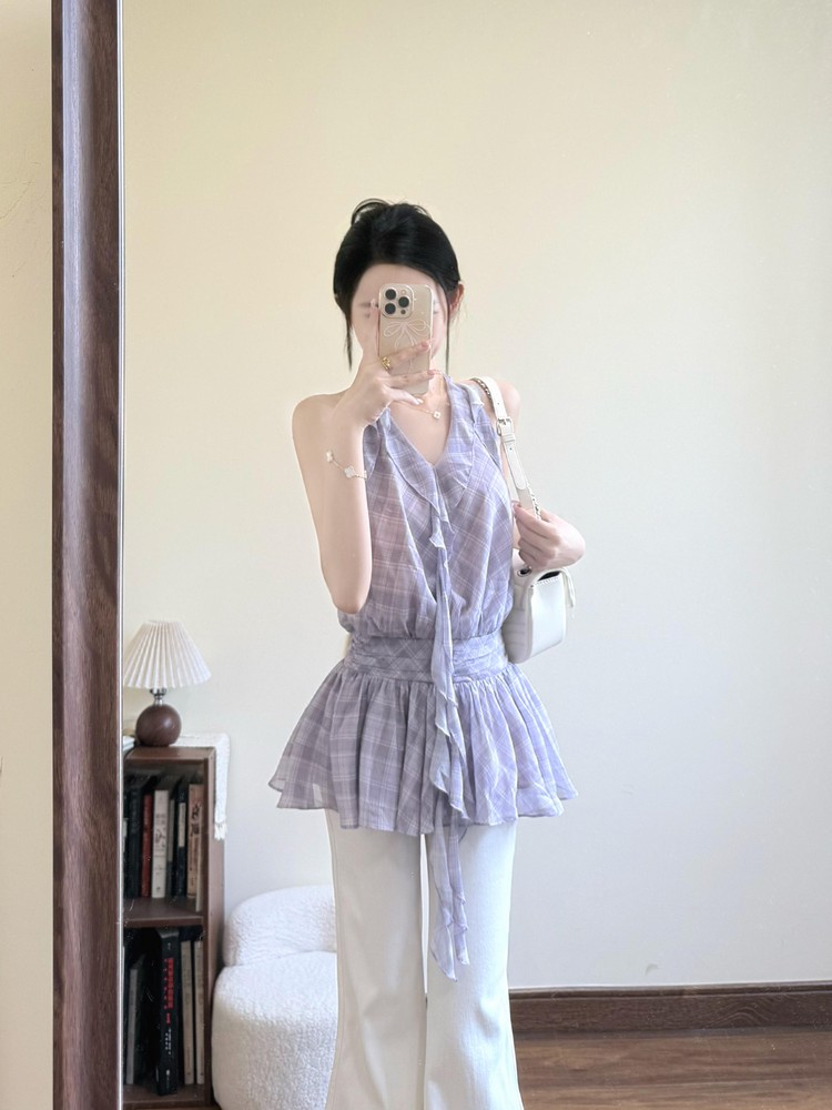 Checkered Sleeveless Dress Floating Ribbon Lace Edge Women Loose Chiffon Summer High-quality product featuring summer fits, holiday dresses, christmas dress and more. Modern design that fits the latest trends. Premium materials ensure durability and comfort. Order now for special offers! Product designed with attention to every detail. Suitable for all occasions and personal styles.