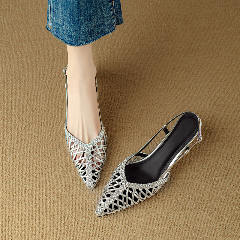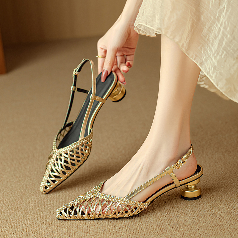 Gold Woven Genuine Leather Pointed Toe Chunky Heel Hollow Out Sals Women Summer Roman Shoes High-quality product featuring vacation outfits, fall fashion, fashion outfits and more. Modern design that fits the latest trends. Premium materials ensure durability and comfort. Order now for special offers! Product designed with attention to every detail. Suitable for all occasions and personal styles.