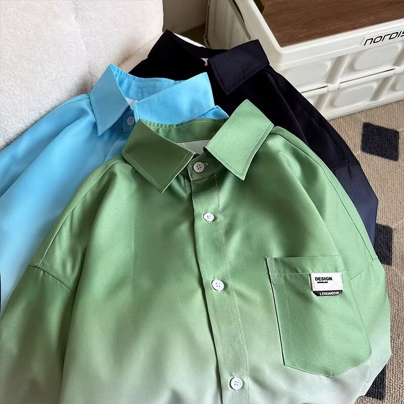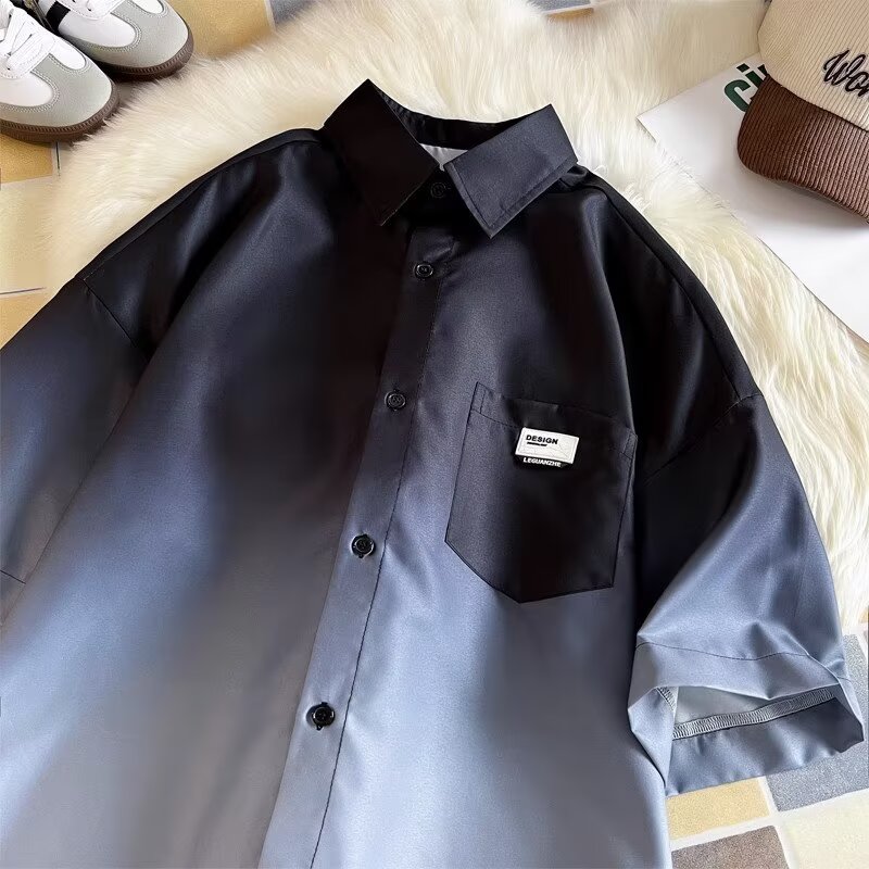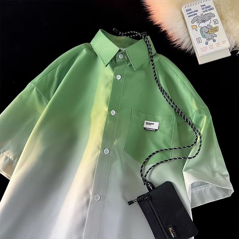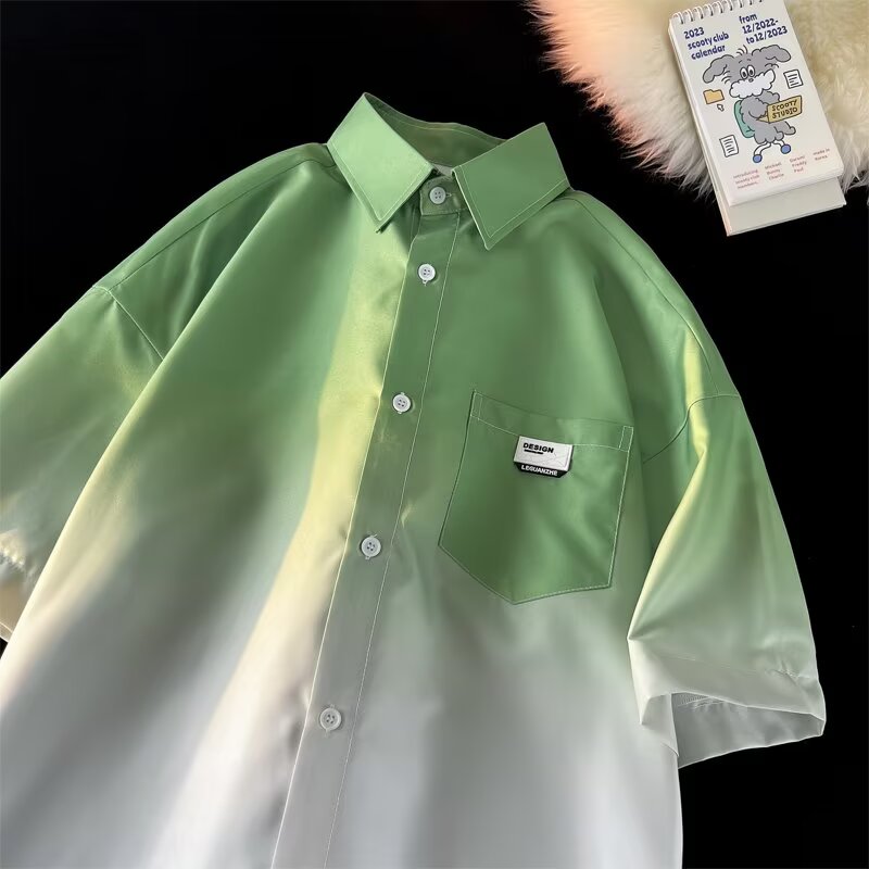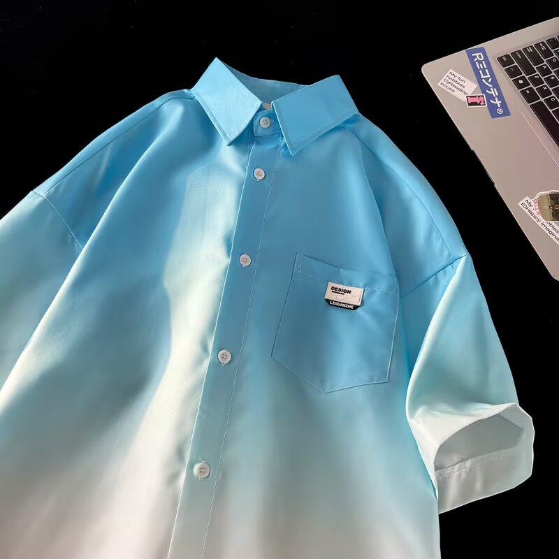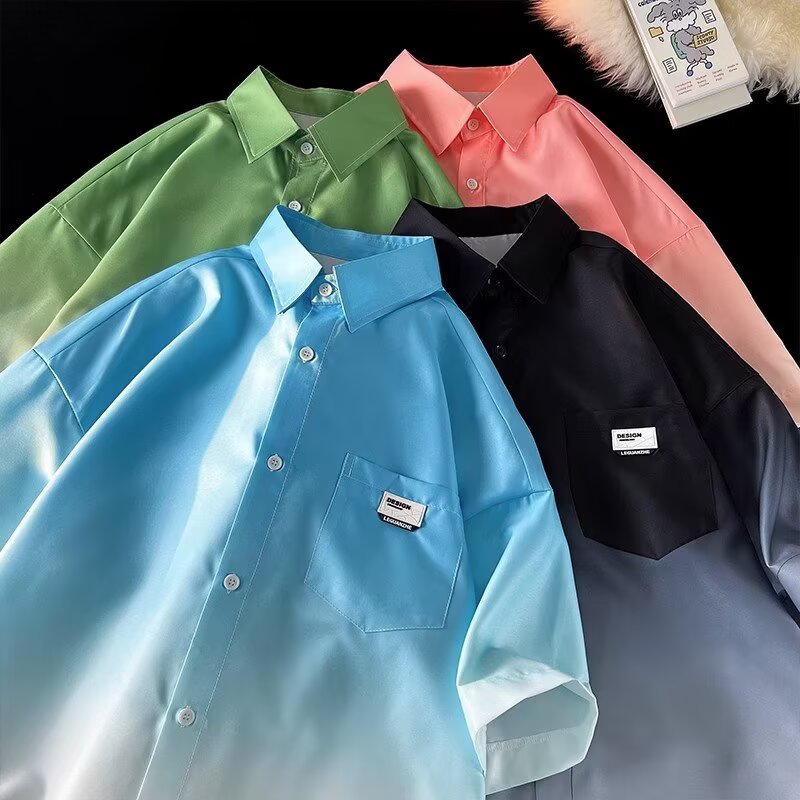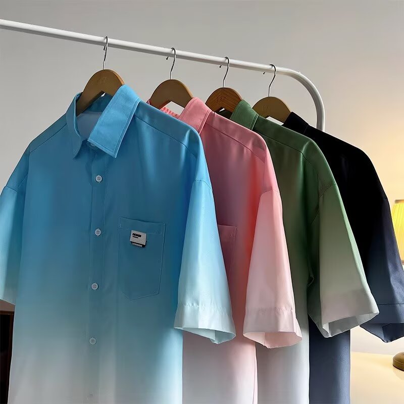 Gradient Pink, White Short Sleeve Shirt Men Ice Silk Summer Couple Jacket Five Point Sleeves High-quality product featuring summer fits, winter fits, dynamic duo costumes couples and more. Modern design that fits the latest trends. Premium materials ensure durability and comfort. Order now for special offers! Product designed with attention to every detail. Suitable for all occasions and personal styles.