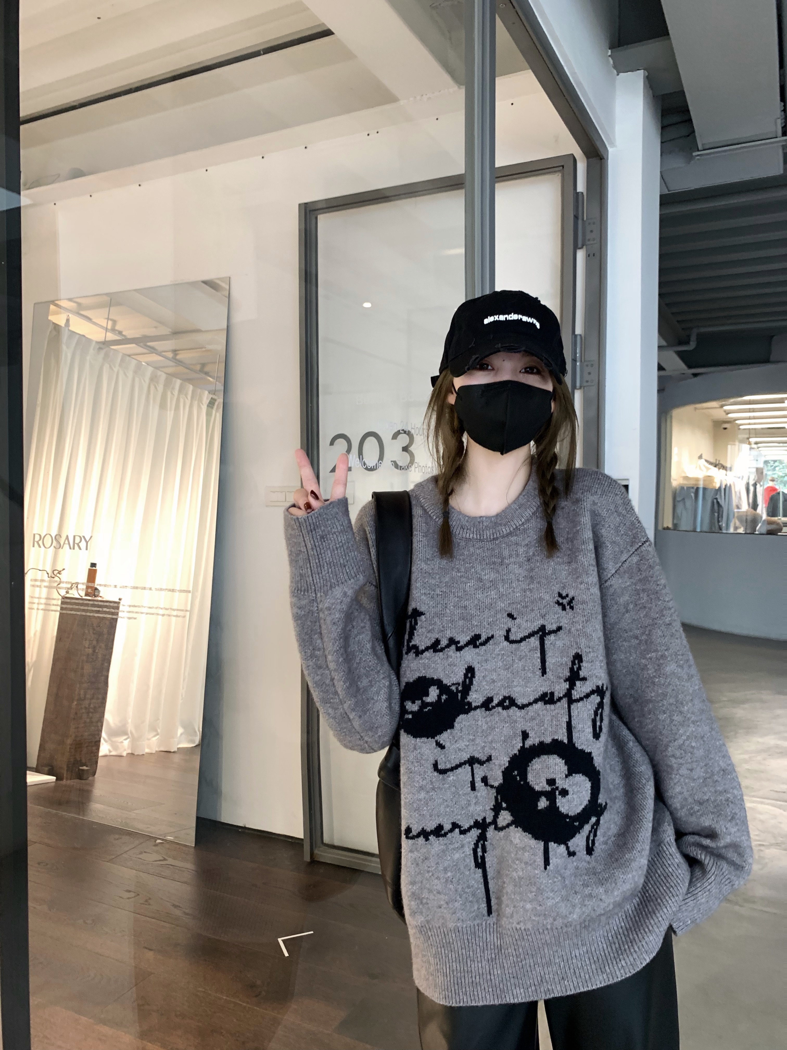 5 reviews for Graffiti Print Pulloverwomen Autumn Winter Knitted Top, Y2k, Coz – Fall Fits