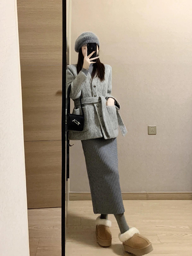 Gray Lace Up Short Woolen Coat Women Winter Outerwear Feel High-quality product featuring winter fits, warm winter outfits, outfit ideas winter and more. Modern design that fits the latest trends. Premium materials ensure durability and comfort. Order now for special offers! Product designed with attention to every detail. Suitable for all occasions and personal styles.