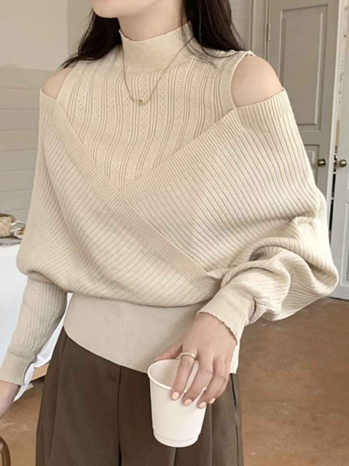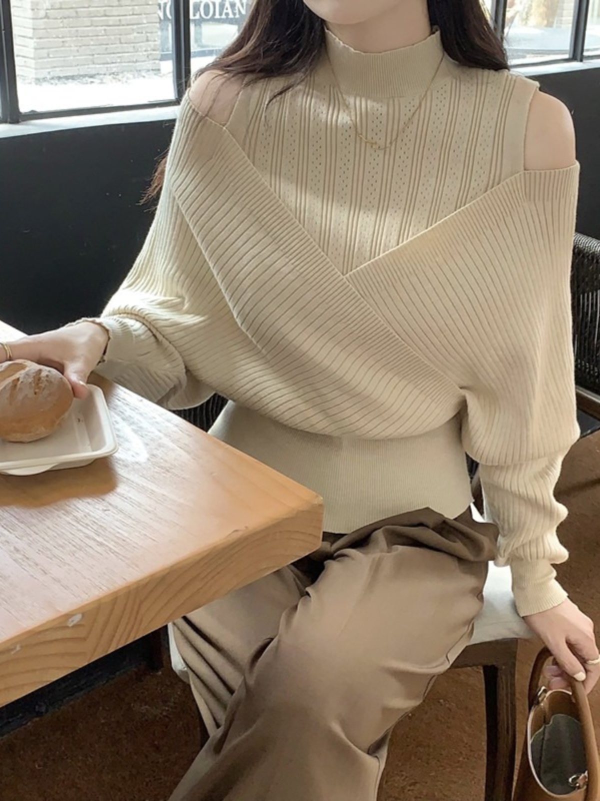 Half High Neck Off Shoulder Cross Long Sleeve Knitted Top Slim Fit Autumn Winter High-quality product featuring warm fall outfits, fall fashion, fall clothing trends 2025 and more. Modern design that fits the latest trends. Premium materials ensure durability and comfort. Order now for special offers! Product designed with attention to every detail. Suitable for all occasions and personal styles.