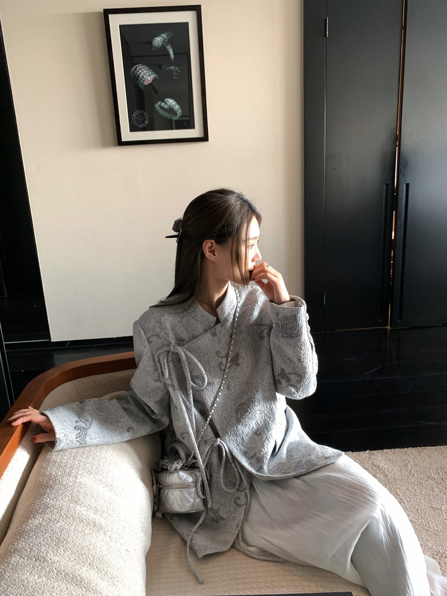 Heavy Texture Slant Placket Top Embossed Jacquard New Tie Jacket Women High-quality product featuring work outfits women, jigsaw costume women, outfit ideas winter and more. Modern design that fits the latest trends. Premium materials ensure durability and comfort. Order now for special offers! Product designed with attention to every detail. Suitable for all occasions and personal styles.