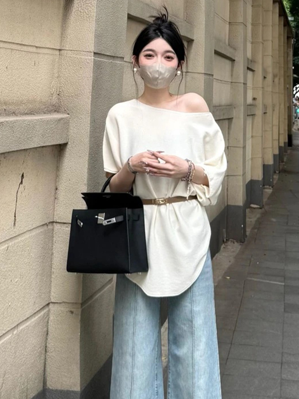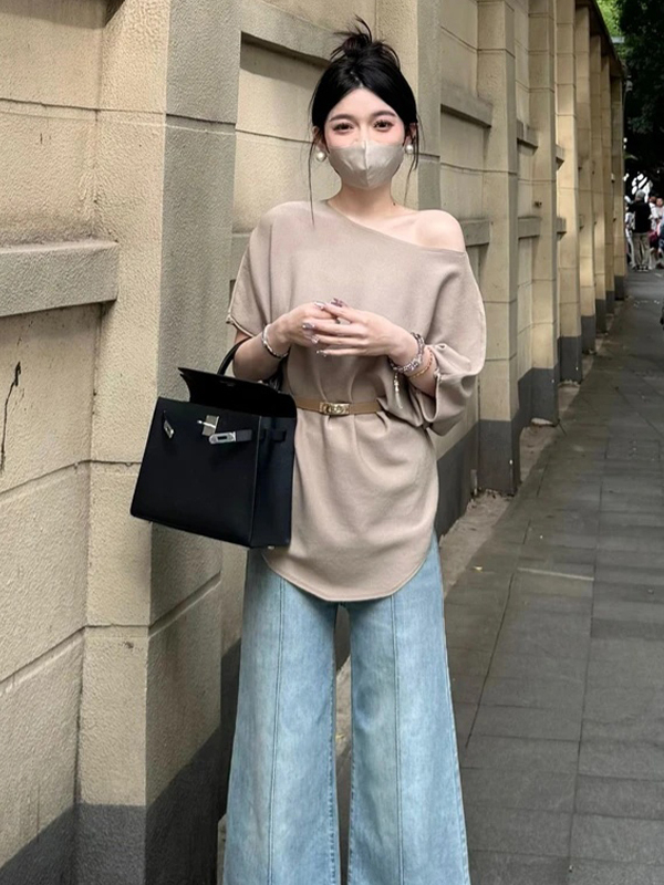 Elevate your summer wardrobe with our High-End Off-Shoulder Short Sleeve Knitted T-Shirt for Women. This chic, casual top features a loose fit and a stylish French-inspired design, perfect for effortless day-to-night transitions. Crafted with lightweight and breathable materials, it ensures comfort while keeping you on-trend. Embrace the warm weather and showcase your unique style add this versatile piece to your cart today!