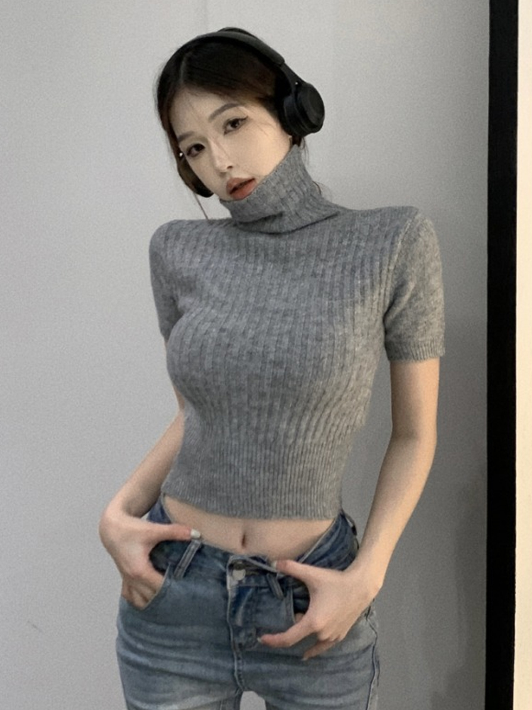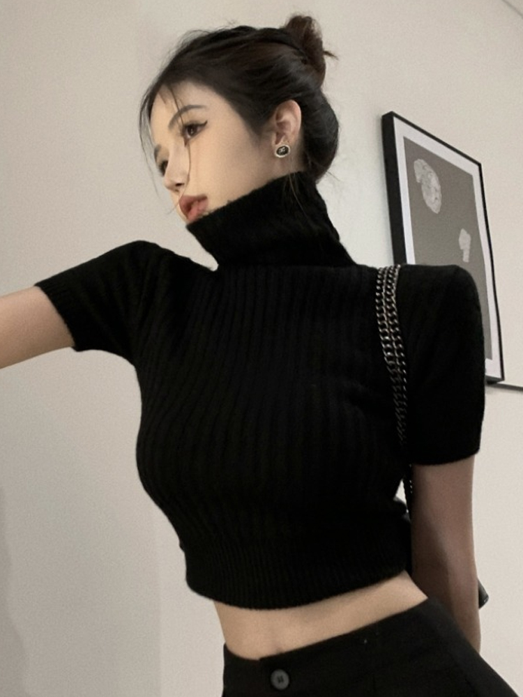 High Neck CroppedWomen Fitted Thick Knit Top, Autumn Winter, Short Sleeve High-quality product featuring warm fall outfits, fall fashion, winter fits and more. Modern design that fits the latest trends. Premium materials ensure durability and comfort. Order now for special offers! Product designed with attention to every detail. Suitable for all occasions and personal styles.
