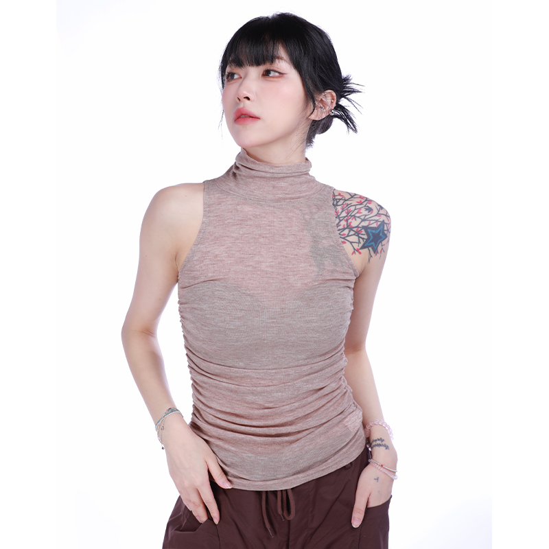 High Neck Sleeveless Tank Top Pleats, Narrow Shoulders Summer Base LayerPure Desire High-quality product featuring casual summer outfits, outfit ideas, outfit inspo fall and more. Modern design that fits the latest trends. Premium materials ensure durability and comfort. Order now for special offers! Product designed with attention to every detail. Suitable for all occasions and personal styles.