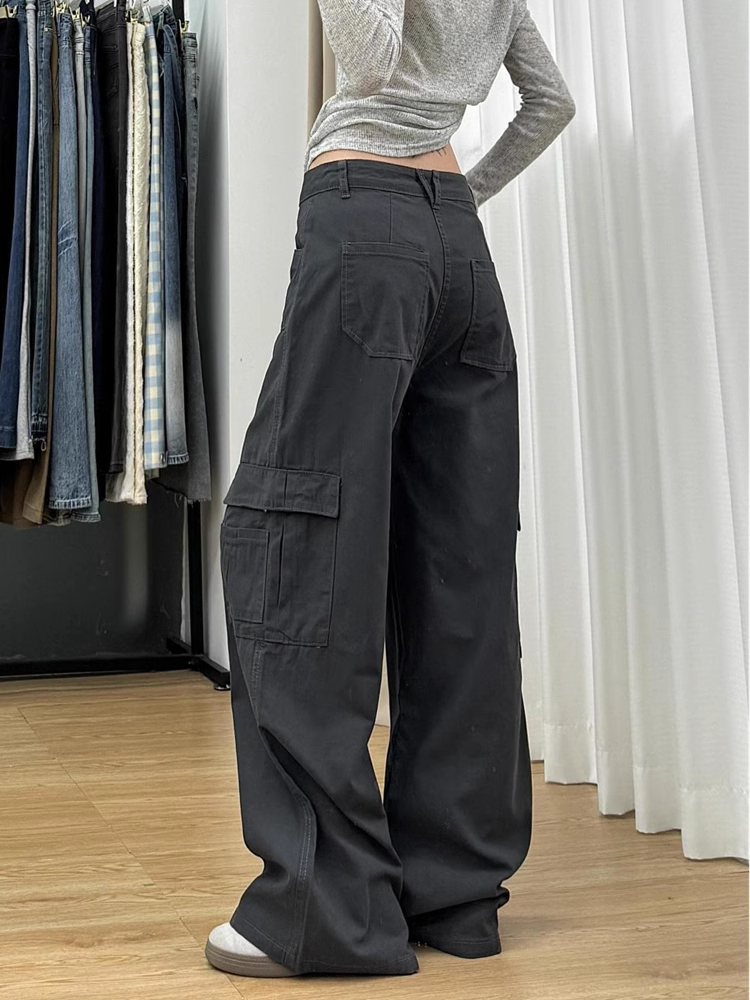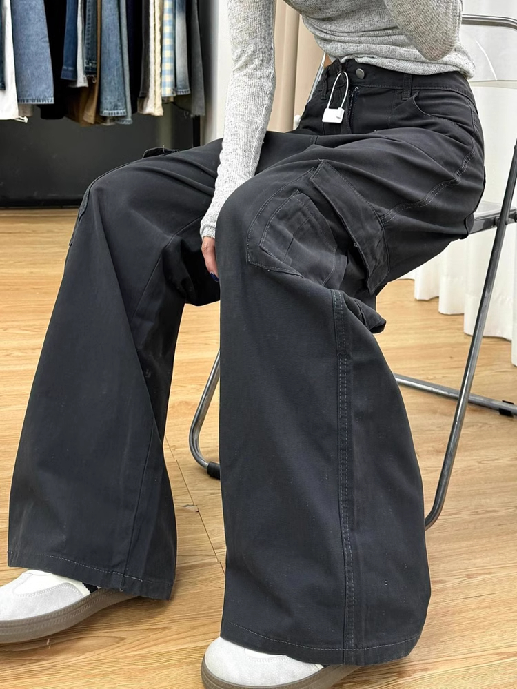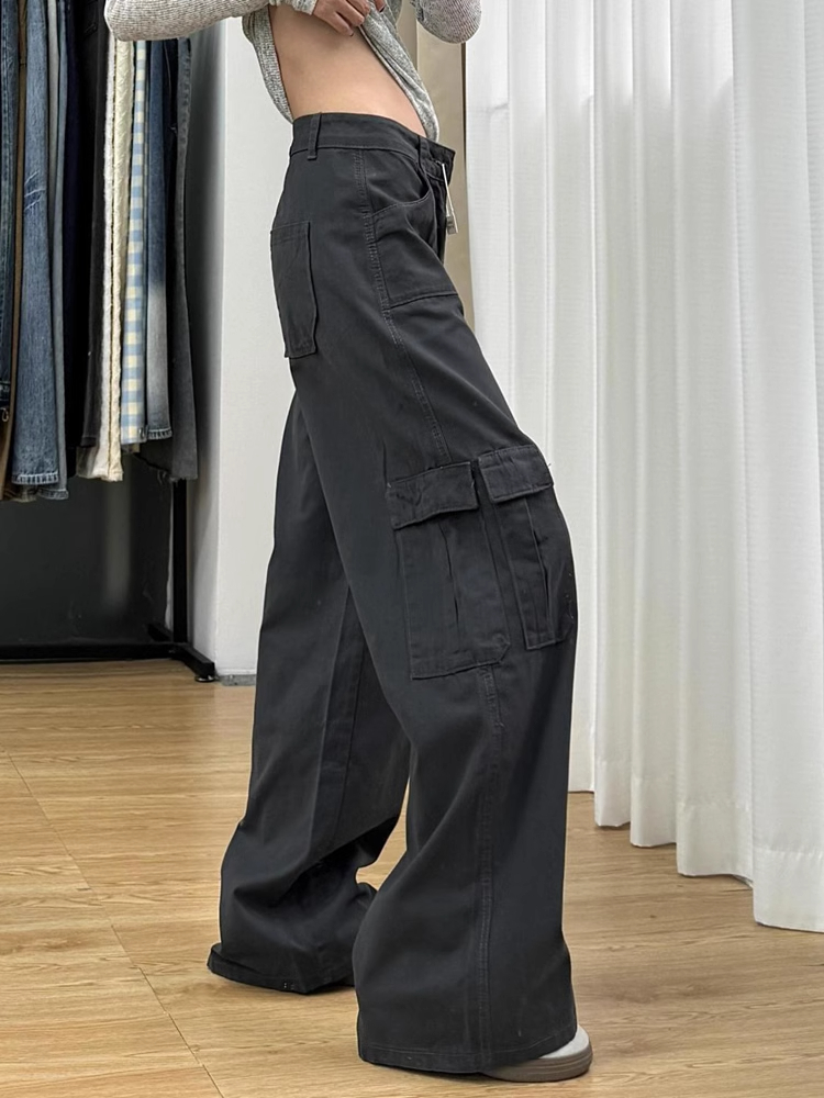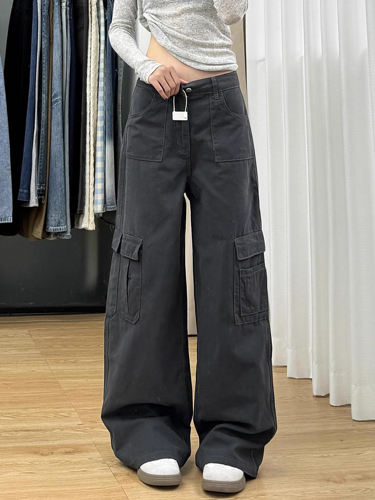 Surprisingly well-made for the price— no harsh smell out of the box, Small touch, big difference. Glad I picked High Waisted Dark Gray Wide Leg Denim Work Pants Women, Vintage Loose Fitting Summer Large Pockets up.