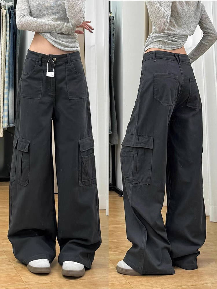 High Waisted Dark Gray Wide Leg Denim Work Pants Women, Vintage Loose Fitting Summer Large Pockets High-quality product featuring summer fits, business casual outfits for women, fall outfits women and more. Modern design that fits the latest trends. Premium materials ensure durability and comfort. Order now for special offers! Product designed with attention to every detail. Suitable for all occasions and personal styles.