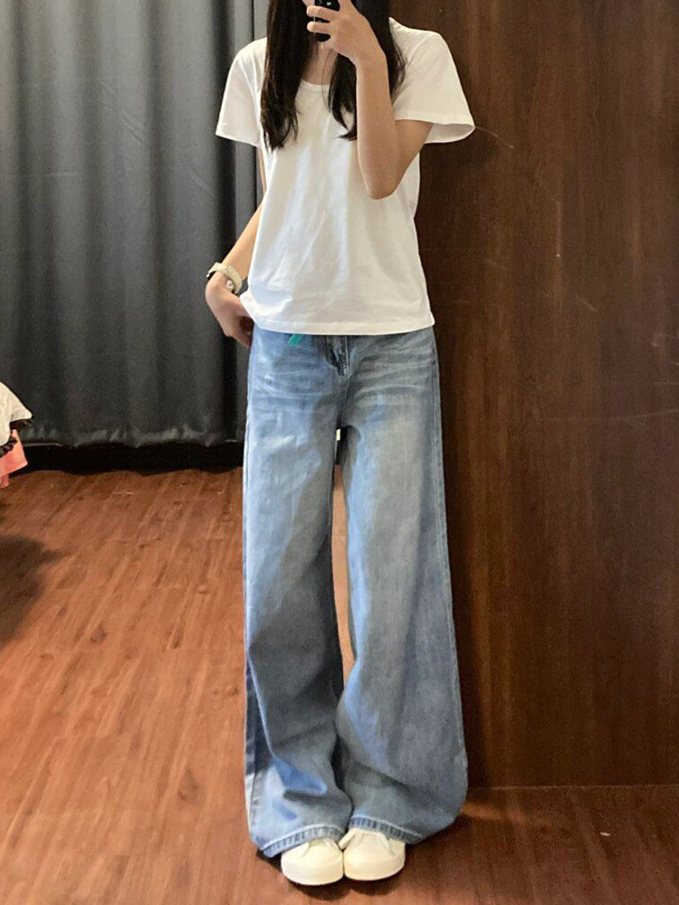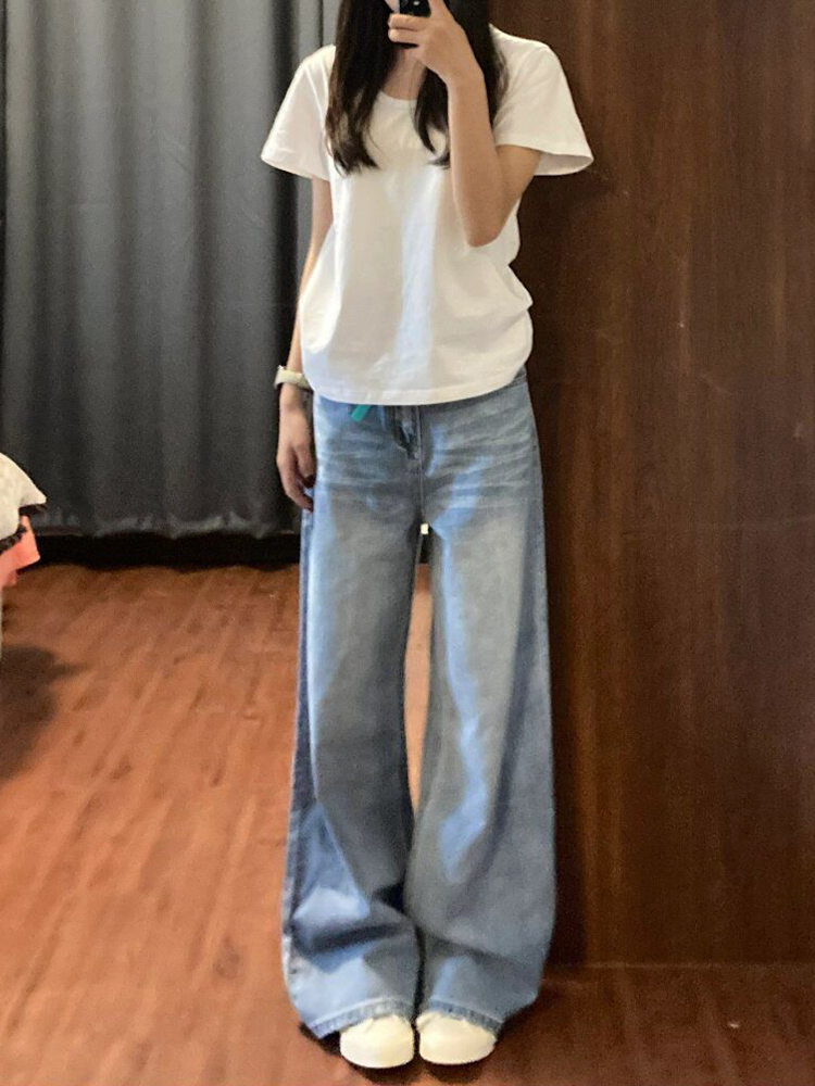 High Waisted Retro Light Blue Wide Leg Jeans Women Summer Loose Fit Straight Leg Floor Length Pants High-quality product featuring casual summer outfits, fall fits, spring outfit and more. Modern design that fits the latest trends. Premium materials ensure durability and comfort. Order now for special offers! Product designed with attention to every detail. Suitable for all occasions and personal styles.