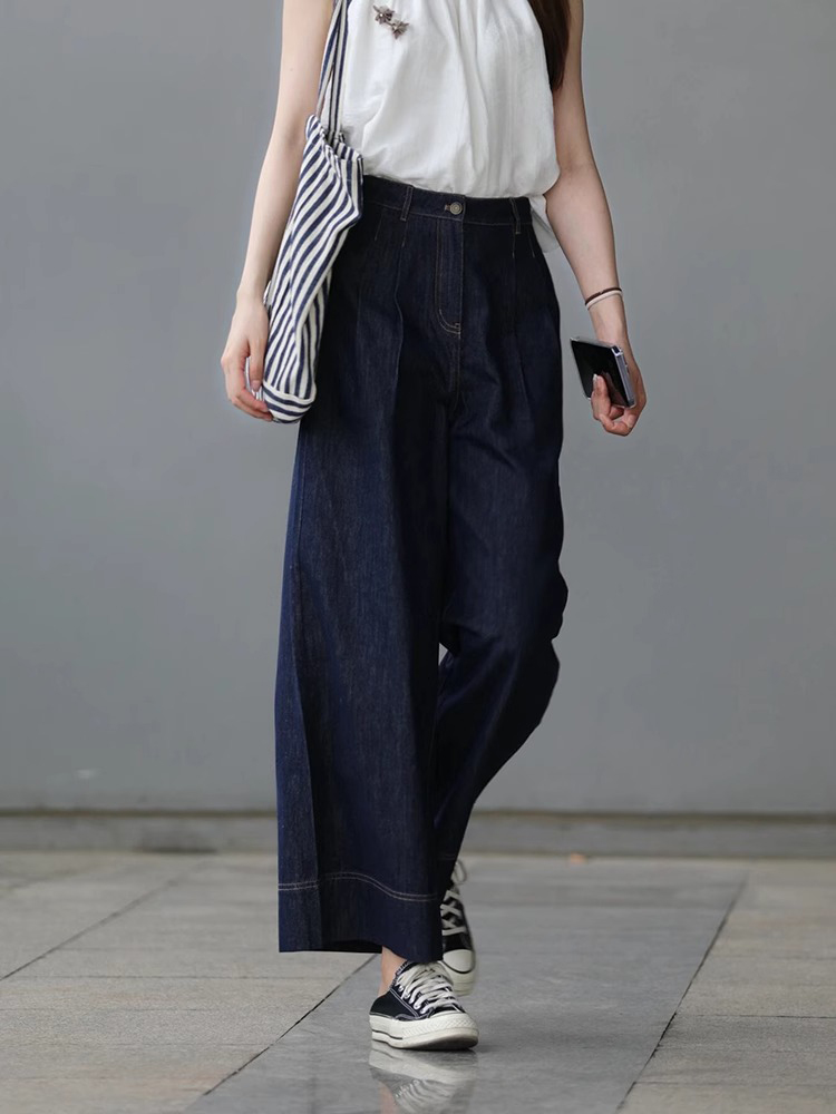Elevate your summer wardrobe with our High-Waisted Retro Minimalist Wide-Leg Jeans for Women. Designed for effortless style, these casual draped loose straight pants offer a flattering fit that complements any body shape while ensuring maximum comfort. The breathable fabric and wide-leg silhouette make them perfect for warm days, allowing you to move freely without compromising on chic. Make a statement this season shop now and add these essential jeans to your cart!