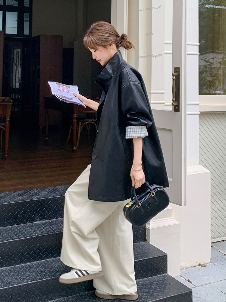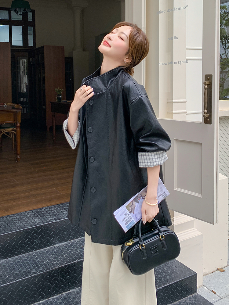 Retro Black Collar Leather Jacket Women pring Loose Slim Fit Mid Length Outerwear High-quality product featuring fashion outfits, outfit inspo, midsize winter outfits and more. Modern design that fits the latest trends. Premium materials ensure durability and comfort. Order now for special offers! Product designed with attention to every detail. Suitable for all occasions and personal styles.