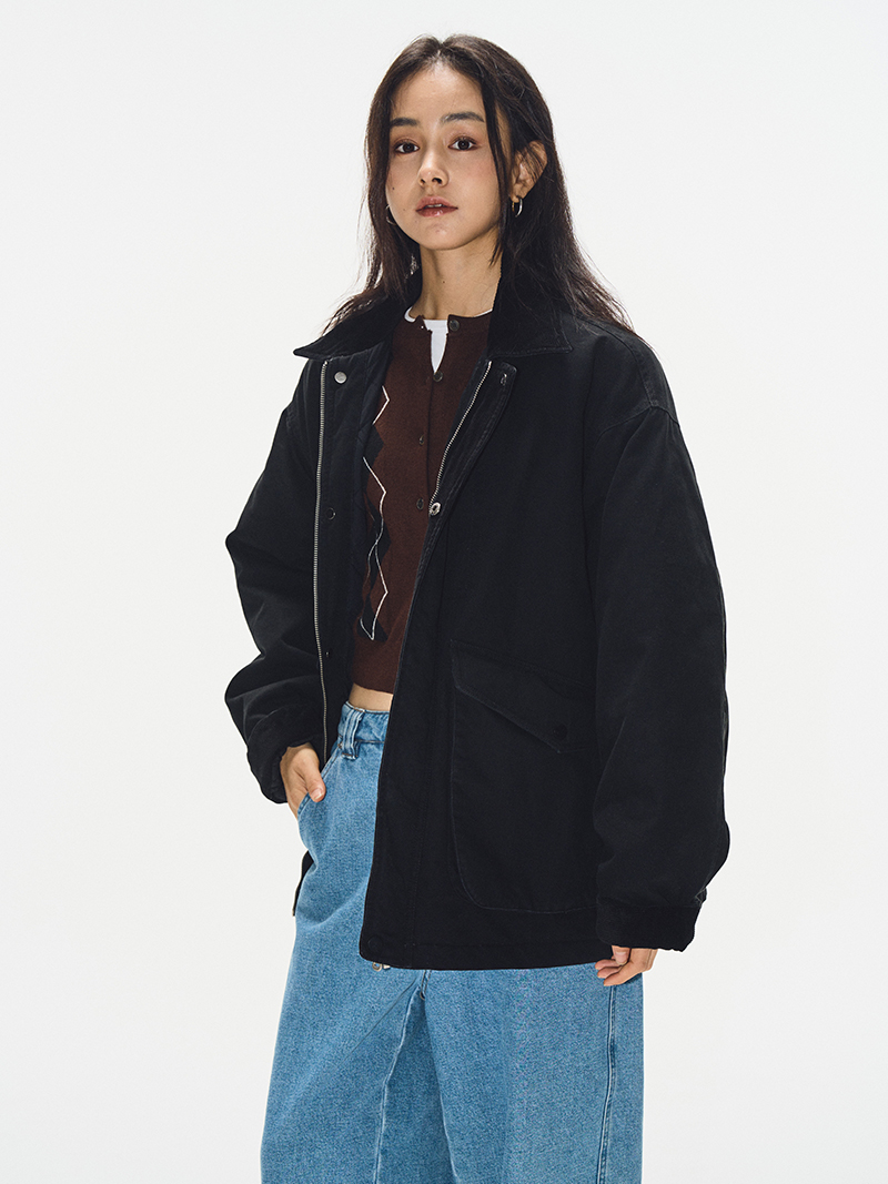 Elevate your outerwear collection with our Korean Style Heavy-Duty Spliced Collar Cotton Jacket for Women. This loose-fitting black quilted workwear windbreaker coat is designed for both comfort and style, featuring a unique spliced collar that adds a contemporary touch to your look. Perfect for layering, this versatile jacket is ideal for chilly days, ensuring you stay warm while making a fashion statement. Don’t miss out on this essential wardrobe piece add to your cart today and step out in confidence!