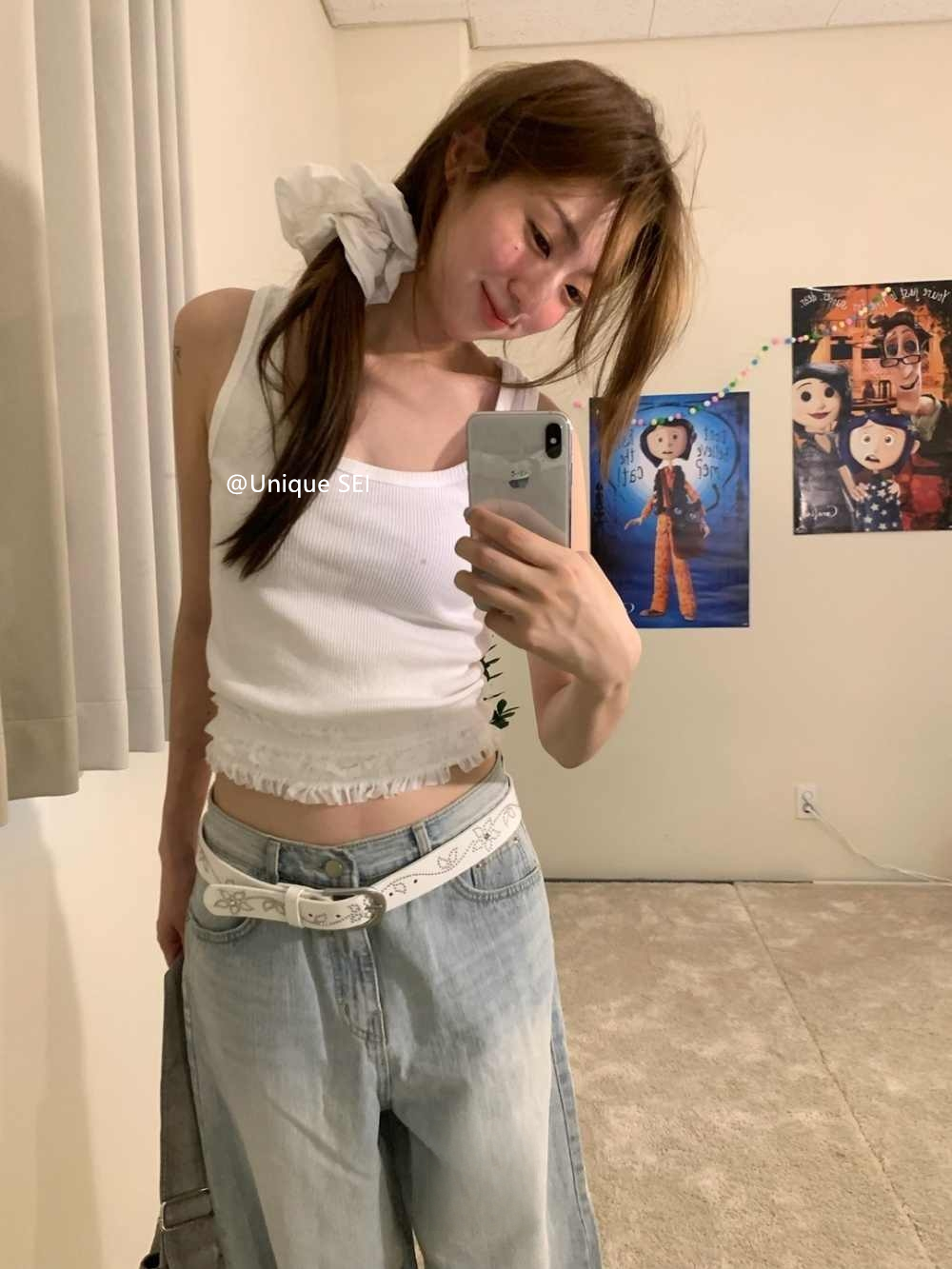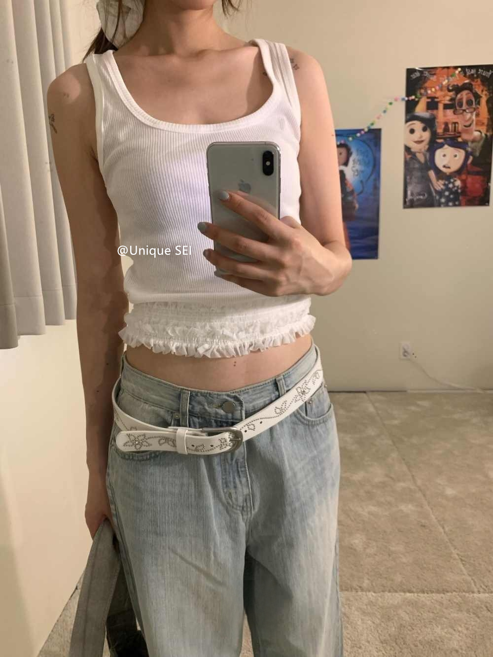 Korean Summer Lace Trim Slim Fit Ribbed Camisole Top High-quality product featuring casual summer outfits, vacation outfits, fall fits and more. Modern design that fits the latest trends. Premium materials ensure durability and comfort. Order now for special offers! Product designed with attention to every detail. Suitable for all occasions and personal styles.