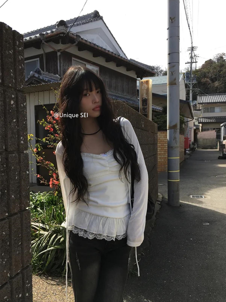 Korean Women Two Set, Tie Camisole, Cardigan, Top Casual Wear High-quality product featuring work outfits women, fashion outfits, casual outfits winter and more. Modern design that fits the latest trends. Premium materials ensure durability and comfort. Order now for special offers! Product designed with attention to every detail. Suitable for all occasions and personal styles.
